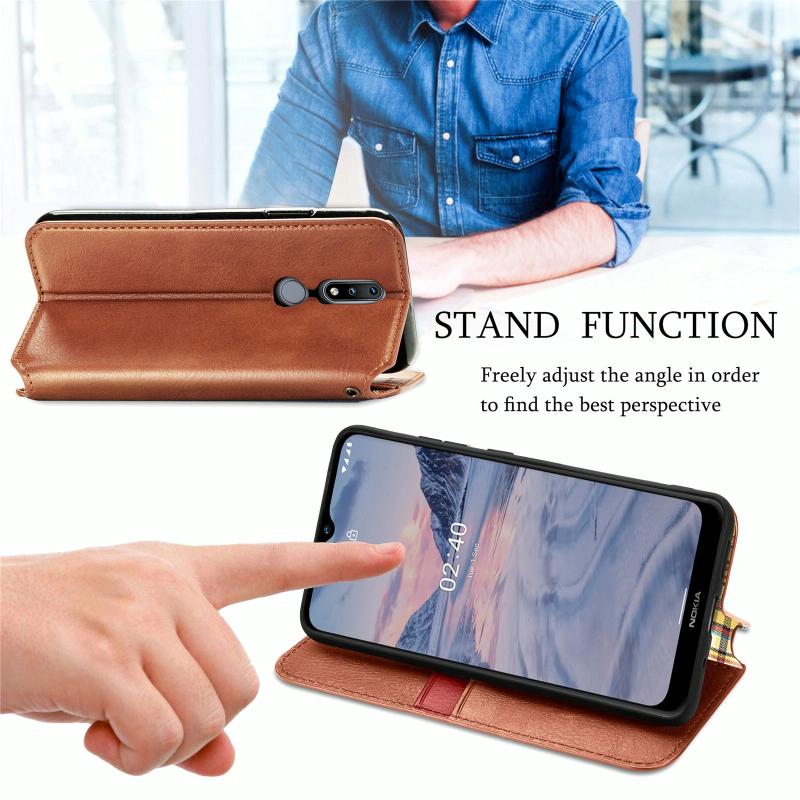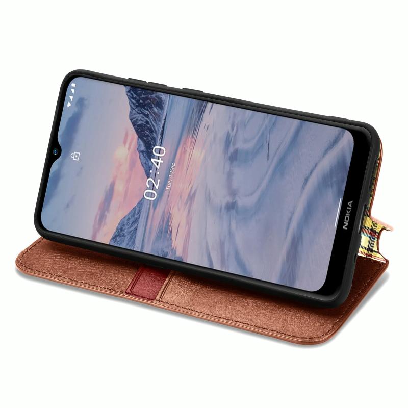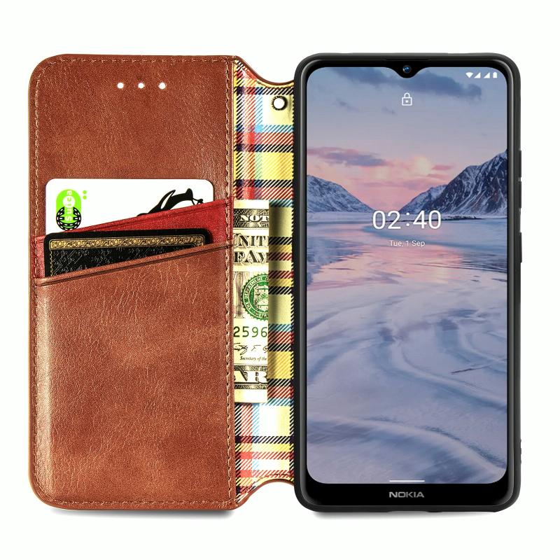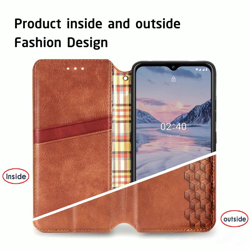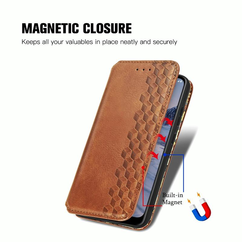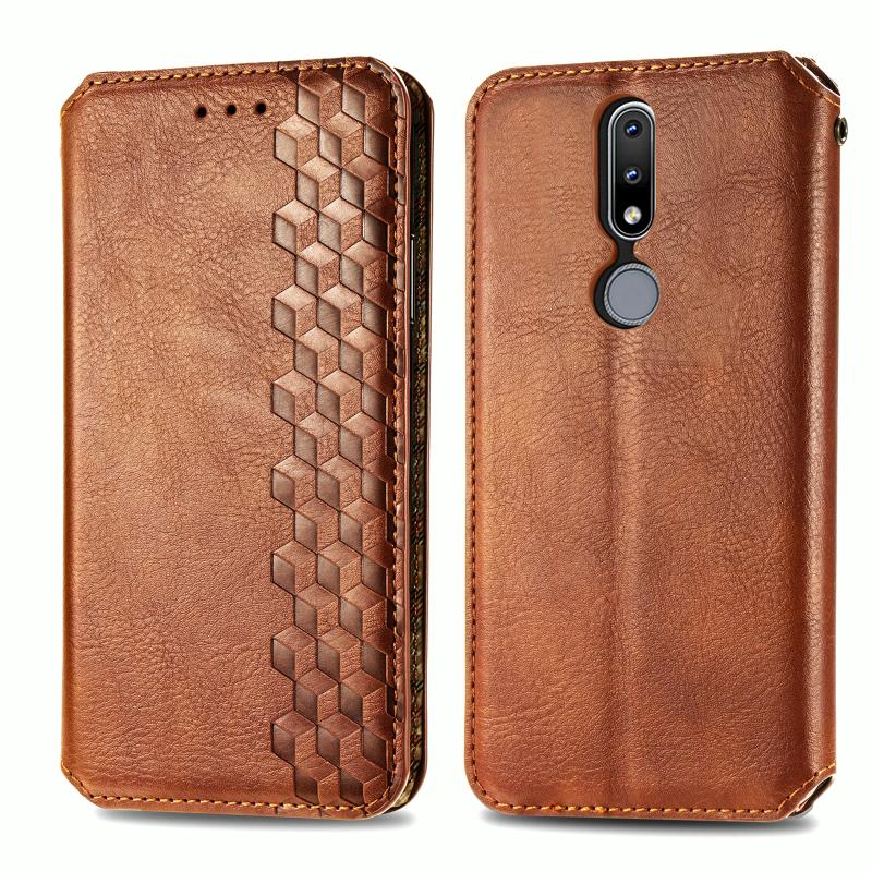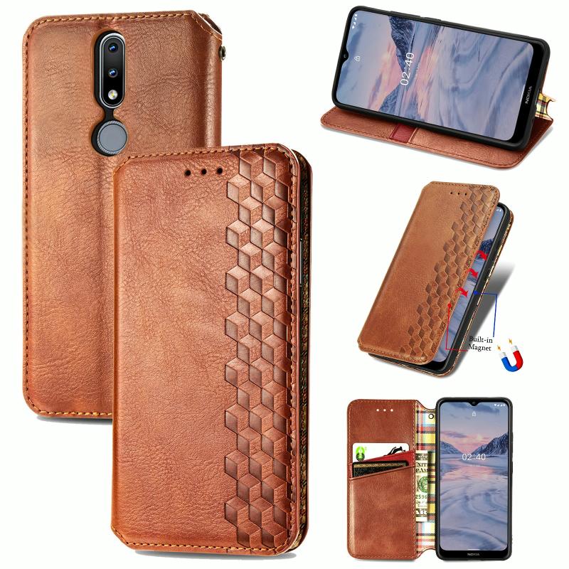 For Nokia 2.4 Cubic Grid Pressed Horizontal Flip Magnetic PU Leather Case with Holder & Card Slots & Wallet(Brown)