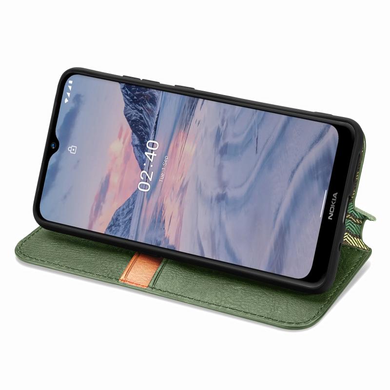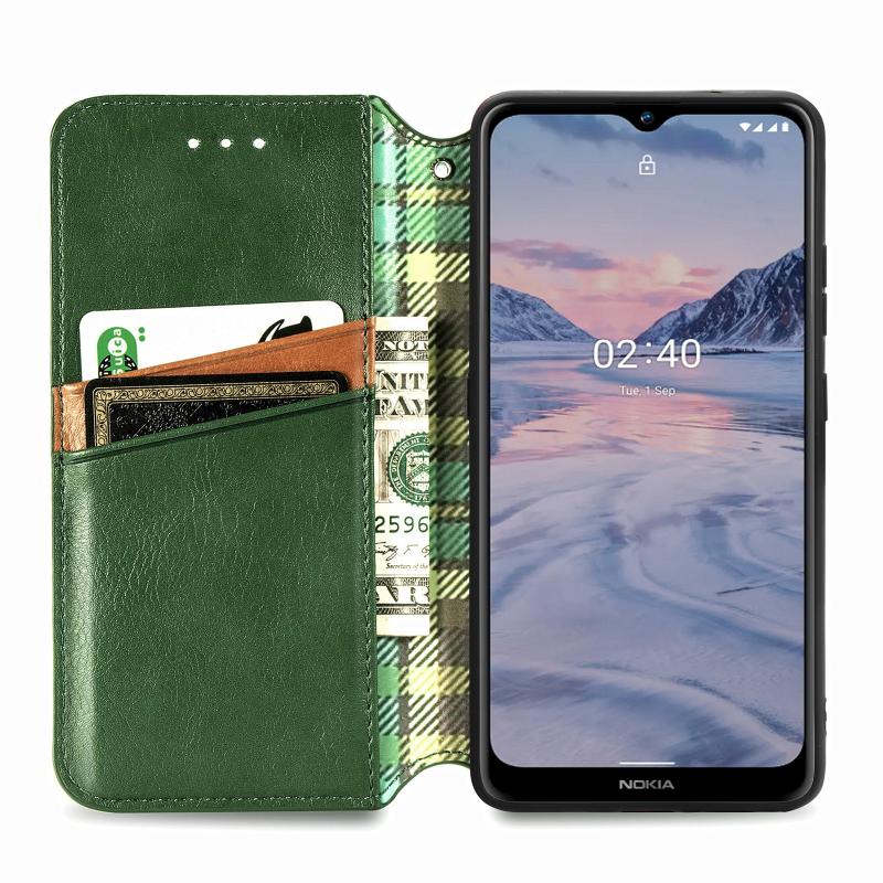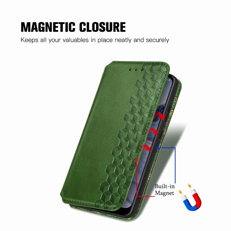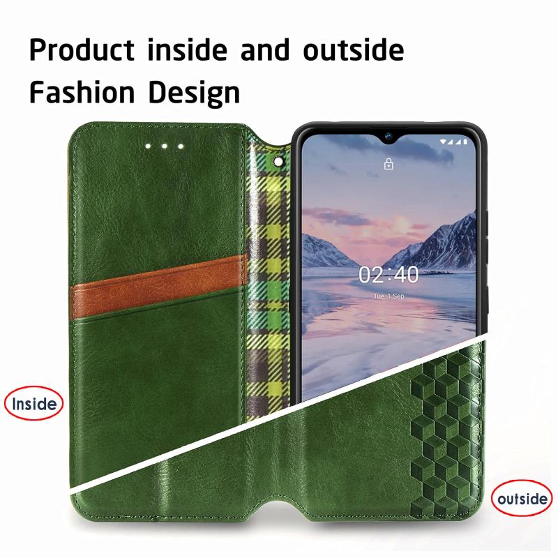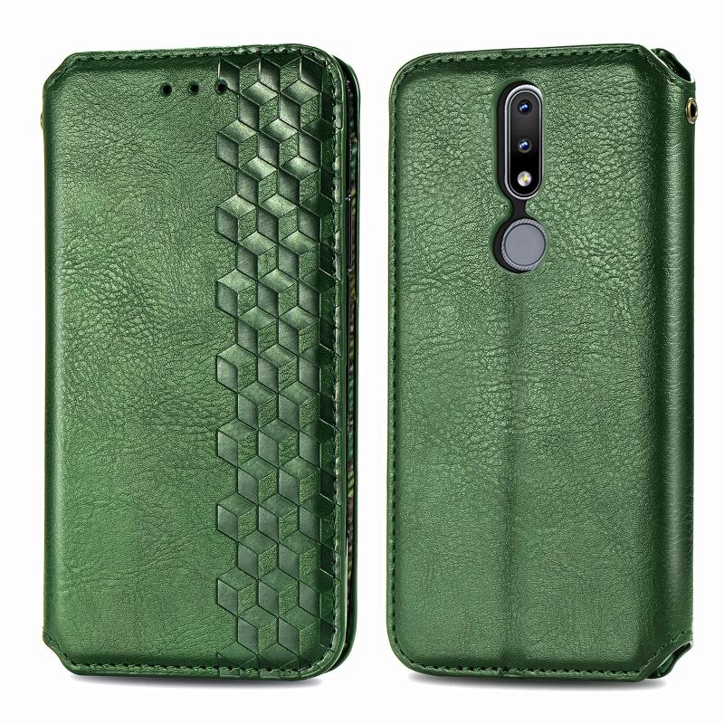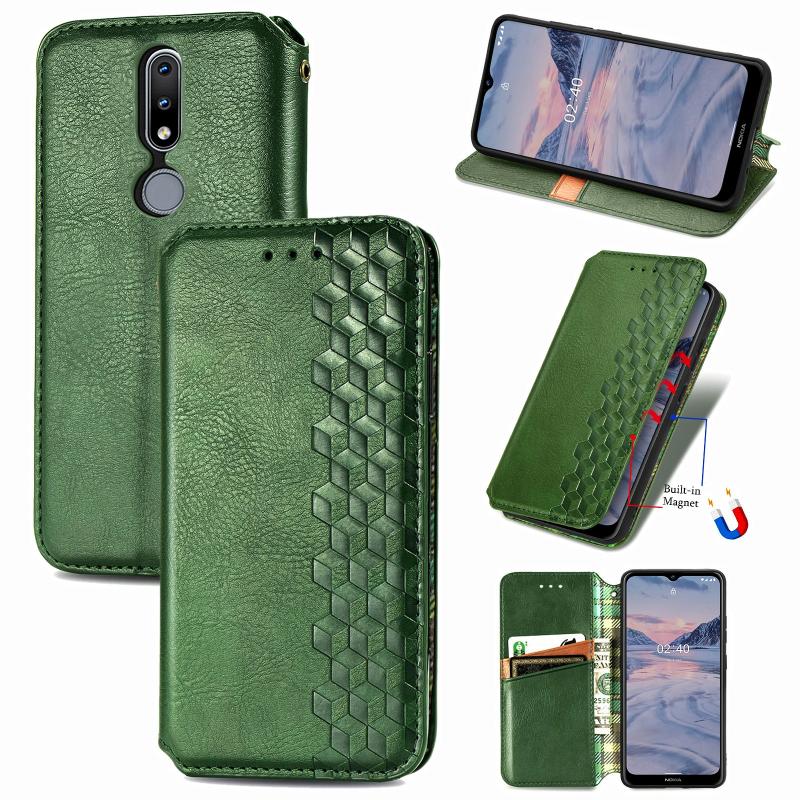 For Nokia 2.4 Cubic Grid Pressed Horizontal Flip Magnetic PU Leather Case with Holder & Card Slots & Wallet(Green)