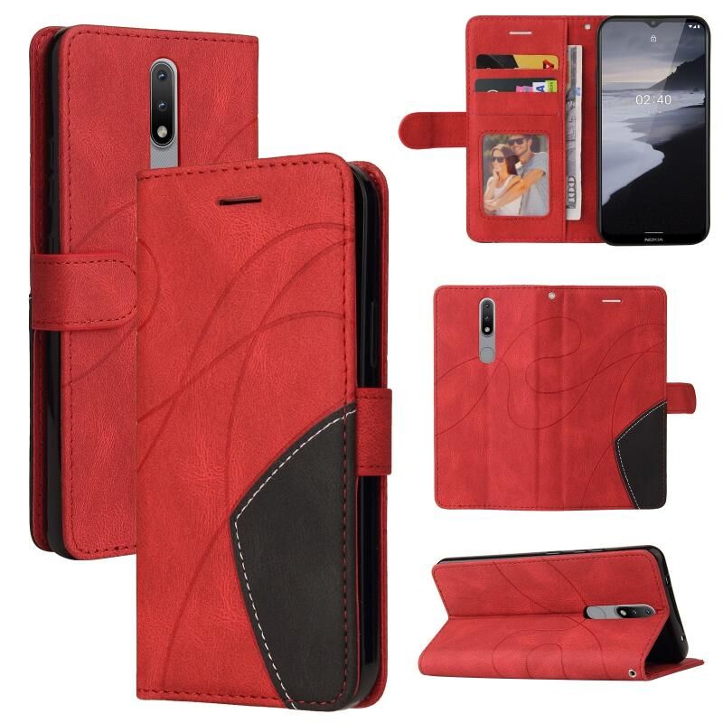 Για Nokia 2.4 Διπλό χρώμα Splicing οριζόντια Flip PU δέρμα υπόθεση με θήκη & υποδοχές για κάρτες & πορτοφόλι (κόκκινο)