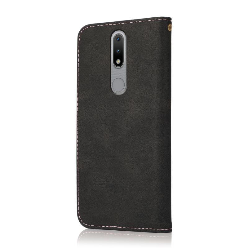 Θήκη τηλεφώνου από δέρμα με διπλή ραφή για Nokia 2.4 (Καφέ Κόκκινο)