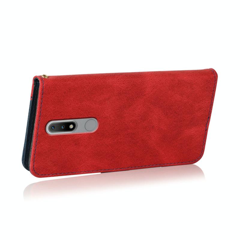 Θήκη τηλεφώνου από δέρμα με διπλή ραφή για Nokia 2.4 (Καφέ Κόκκινο)