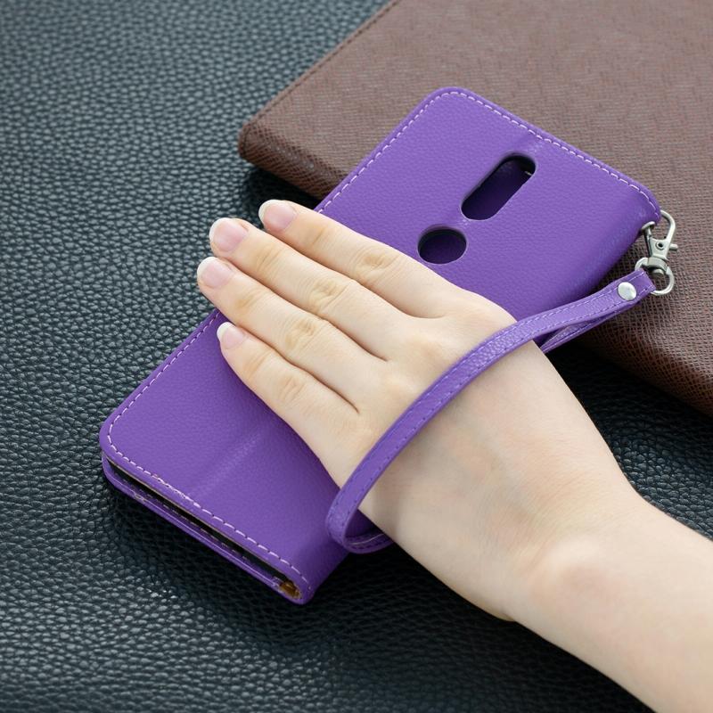 For Nokia 2.4 Litchi Texture Pure Color Horizontal Flip Leather Case with Holder & Card Slots & Wallet & Lanyard(Purple)