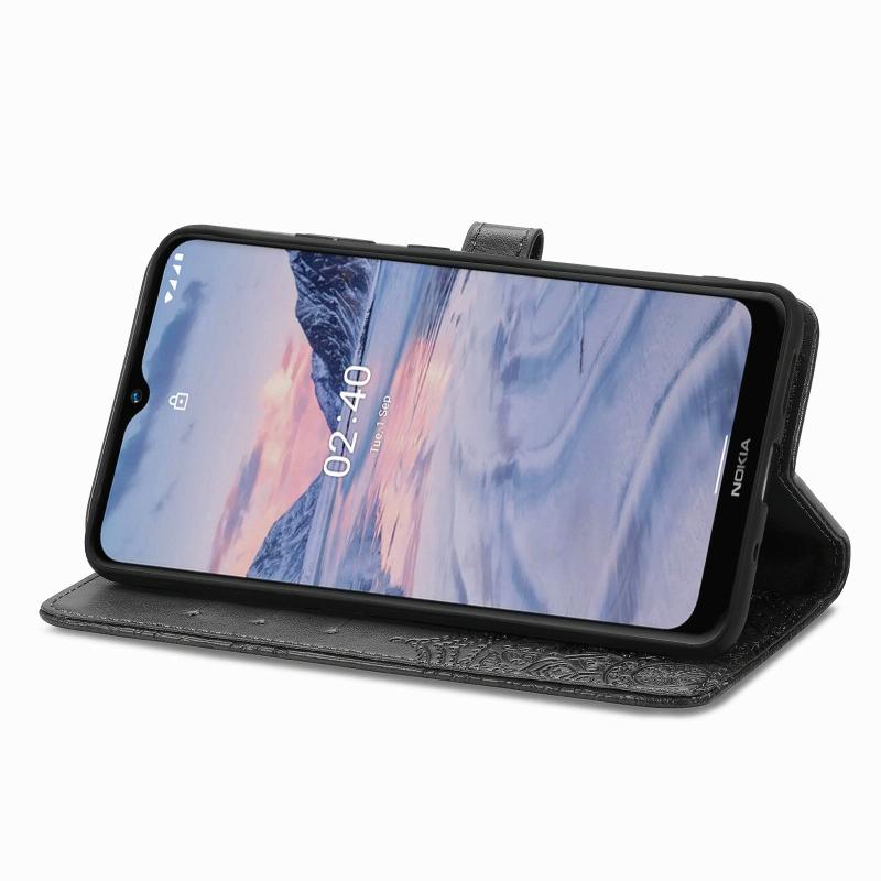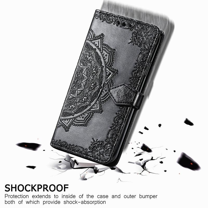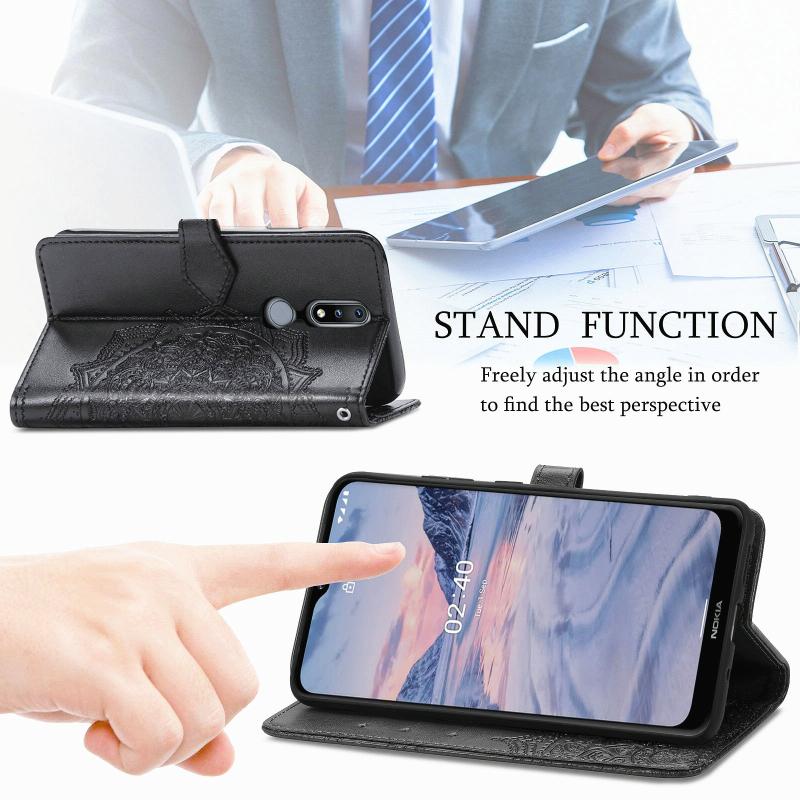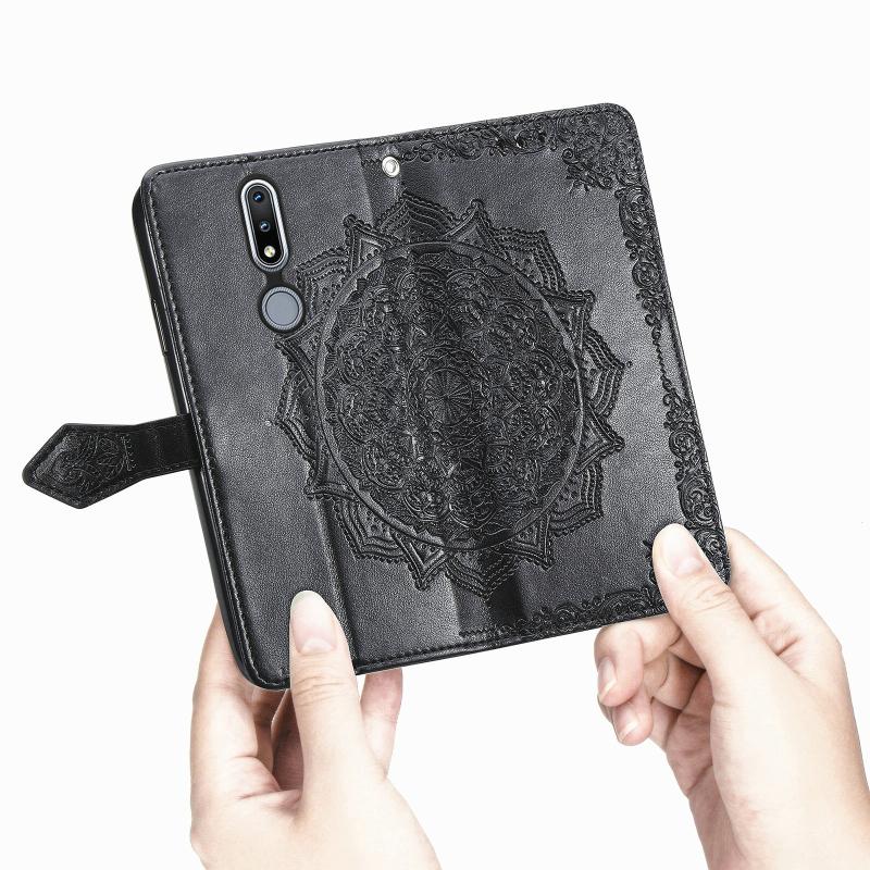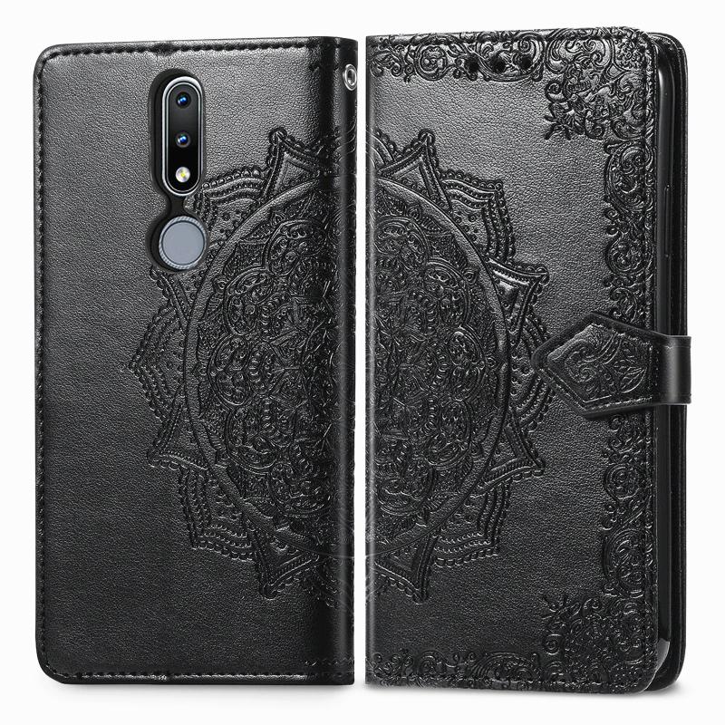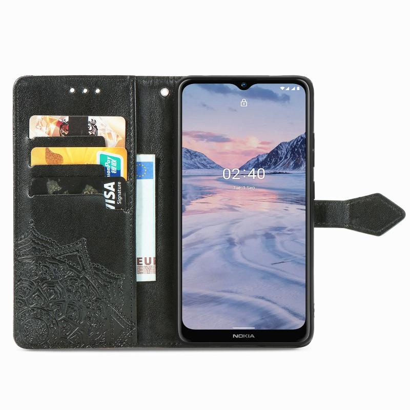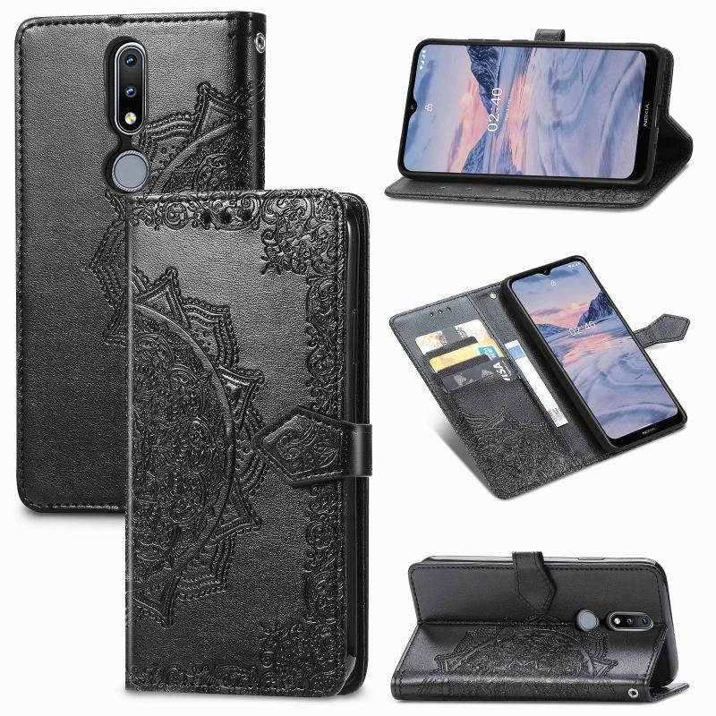 For Nokia 2.4 Mandala Flower Embossed Horizontal Flip Leather Case with Bracket / Card Slot / Wallet / Lanyard(Black)