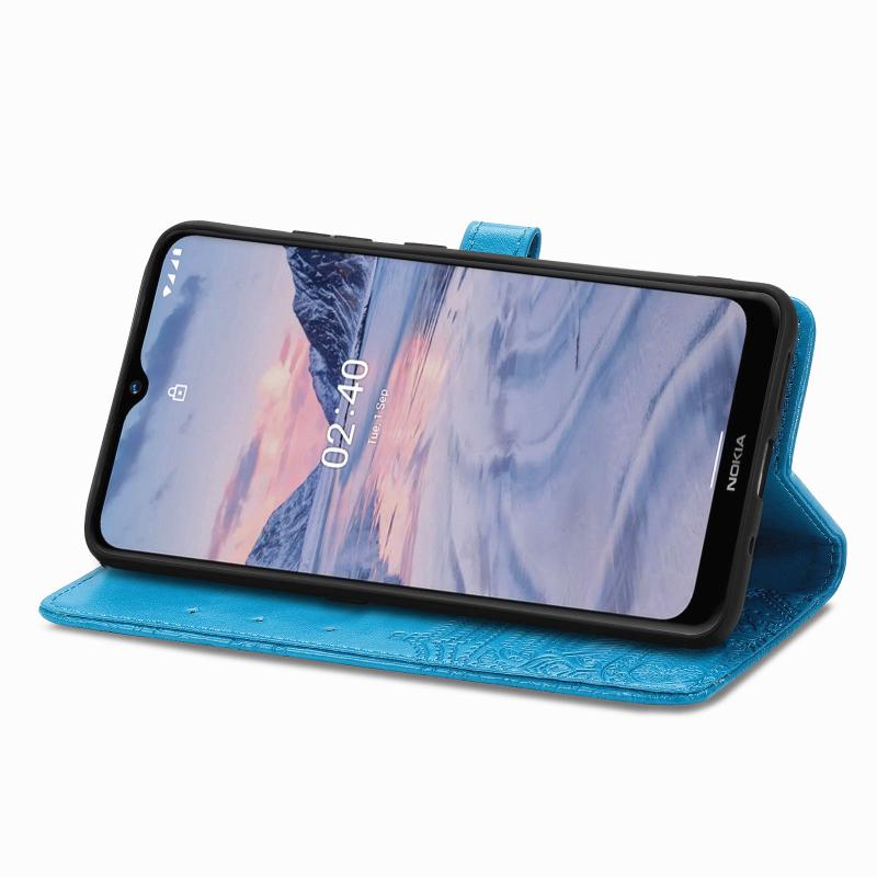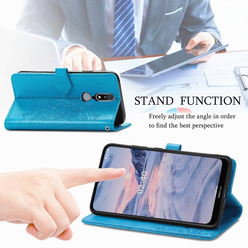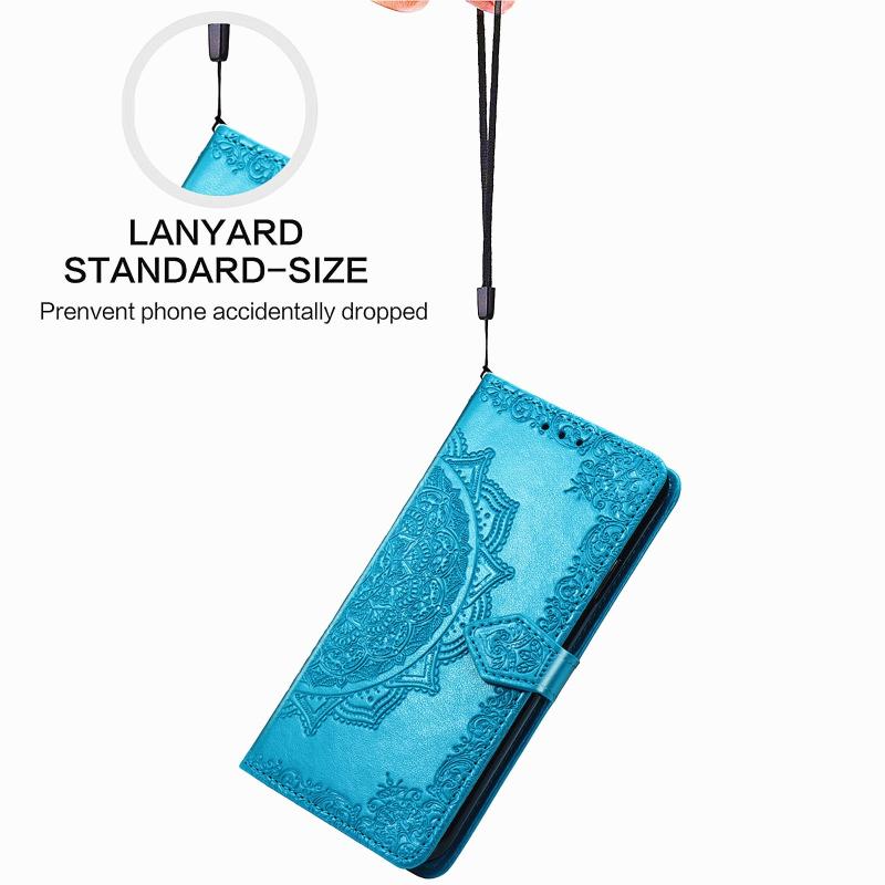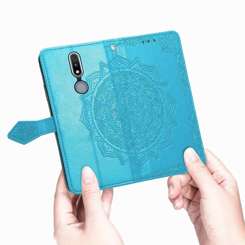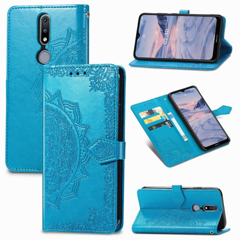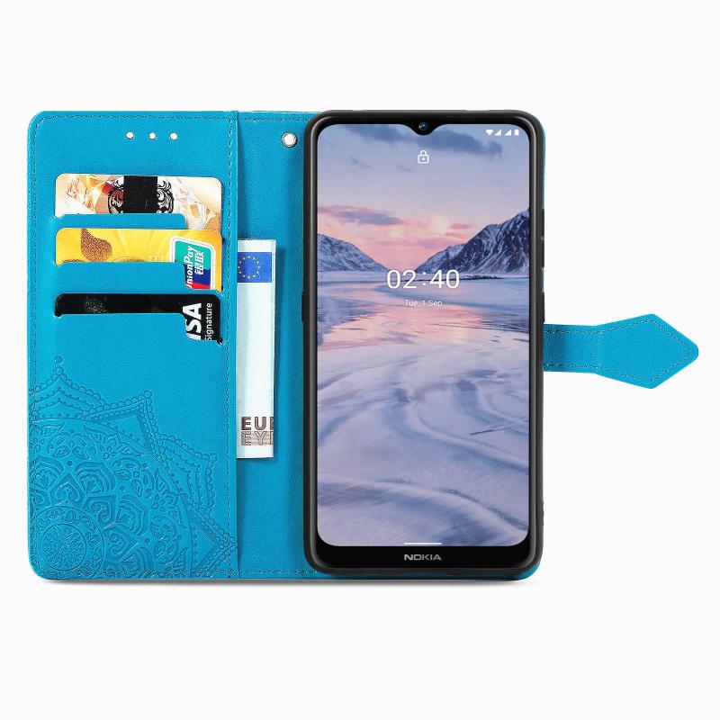 For Nokia 2.4 Mandala Flower Embossed Horizontal Flip Leather Case with Bracket / Card Slot / Wallet / Lanyard(Blue)