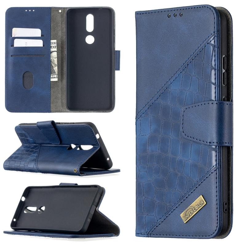 Θήκη Nokia 2.4 Δερμάτινη PU με Υφή Κροκόδειλου, Πορτοφόλι & Κάρτες (Μπλε)