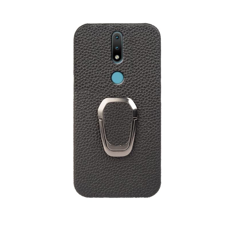 Για Nokia 2.4 Ring Holder Litchi Υφή γνήσιο δέρμα τηλέφωνο υπόθεση (μαύρο)