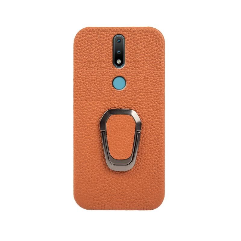 Για Nokia 2.4 Ring Holder Litchi Υφή γνήσιο δέρμα τηλέφωνο υπόθεση (καφέ)