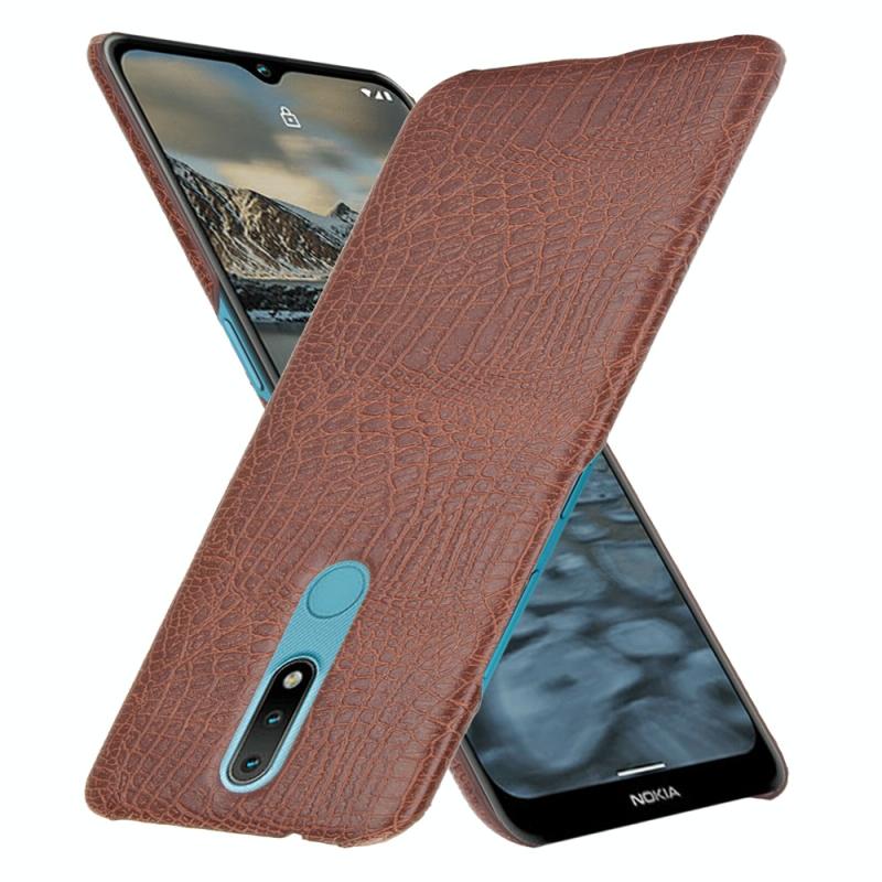 For Nokia 2.4 Shockproof Crocodile Texture PC + PU Case(Brown)