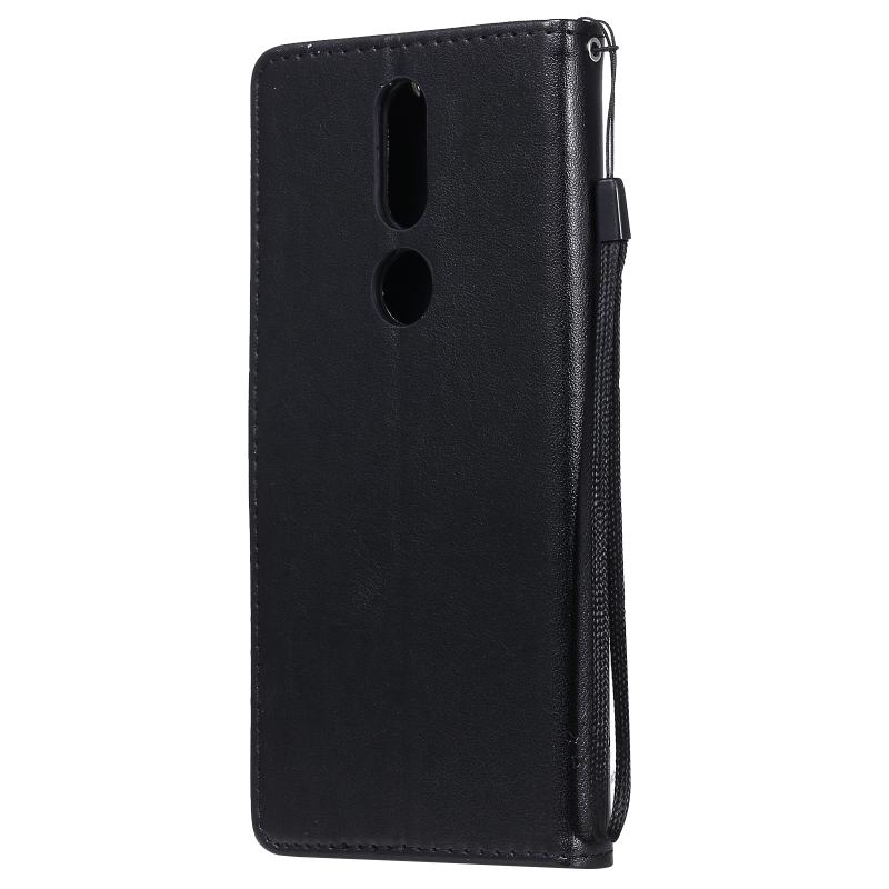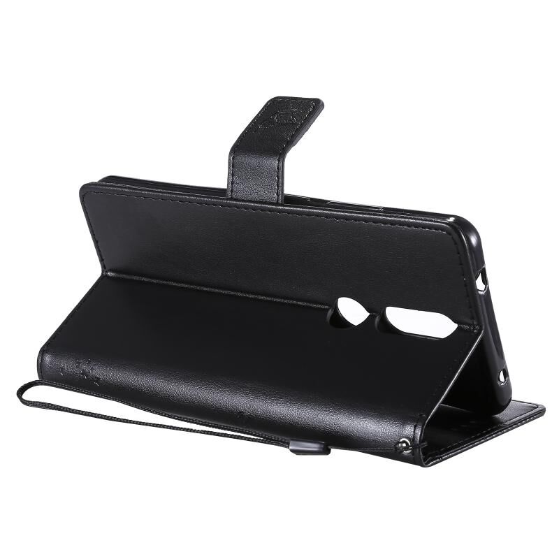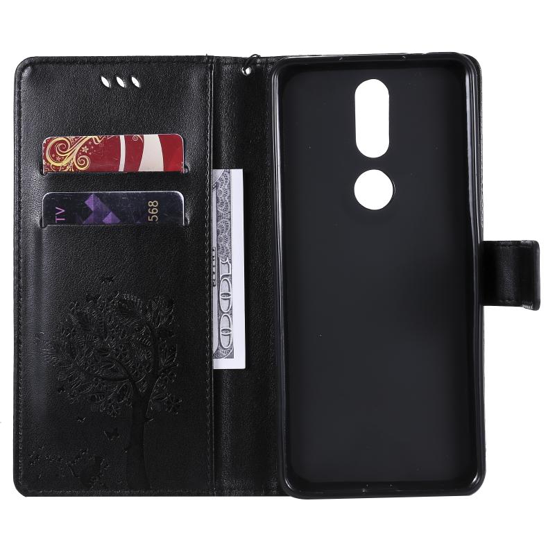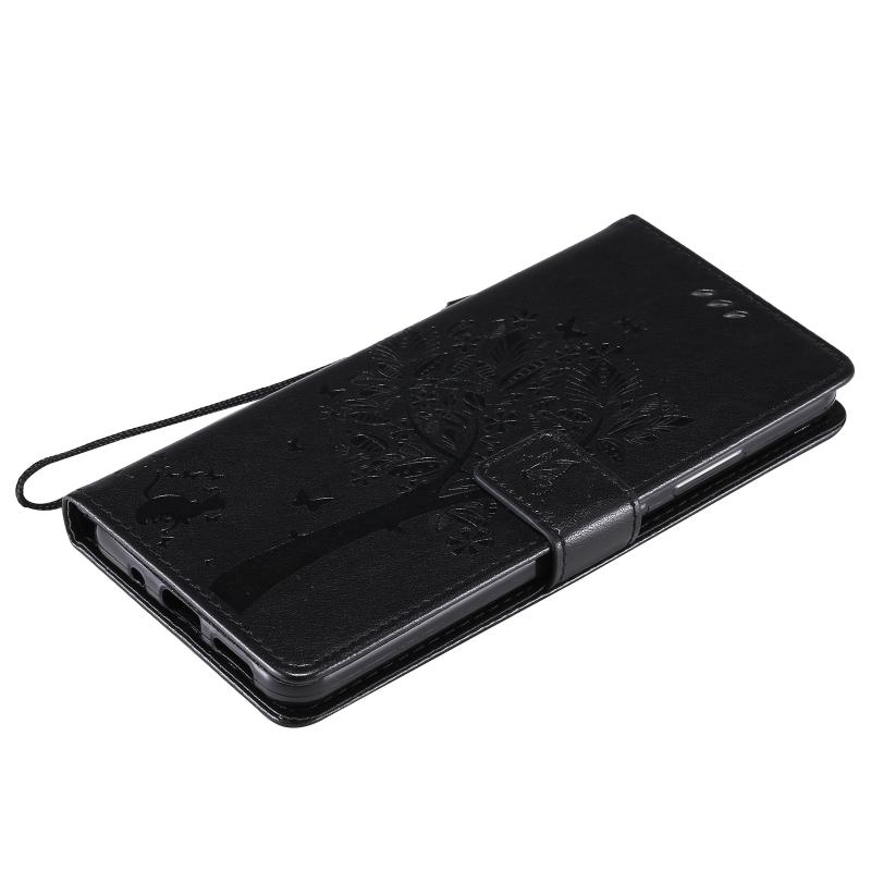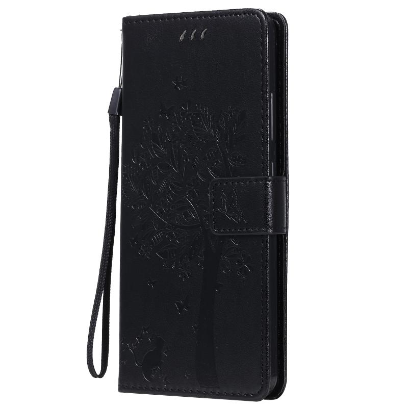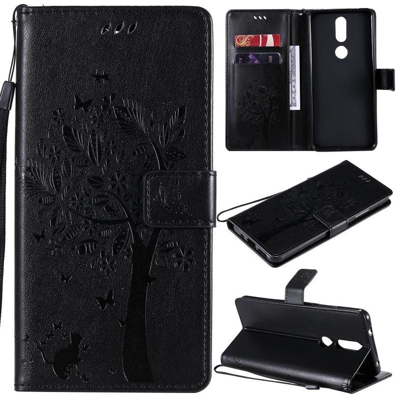 For Nokia 2.4 Tree & Cat Pattern Pressed Printing Horizontal Flip PU Leather Case with Holder & Card Slots & Wallet & Lanyard(Black)
