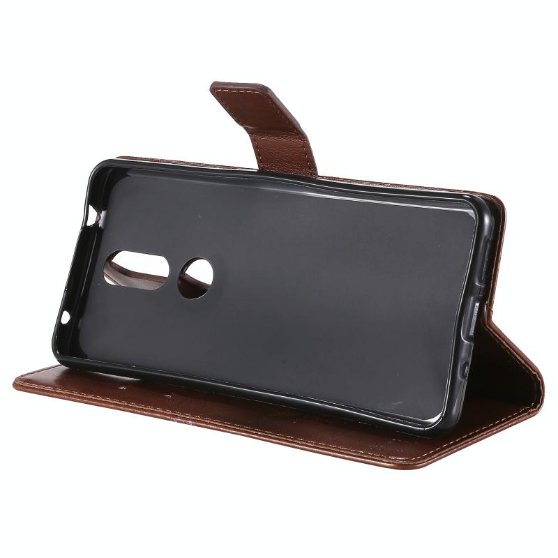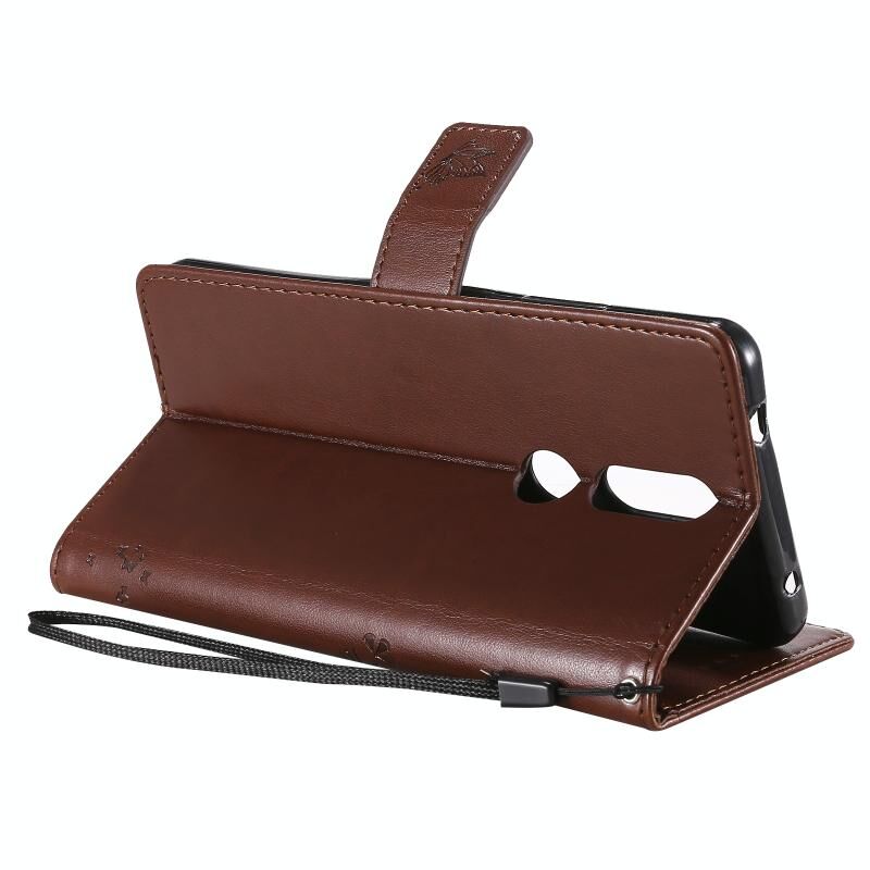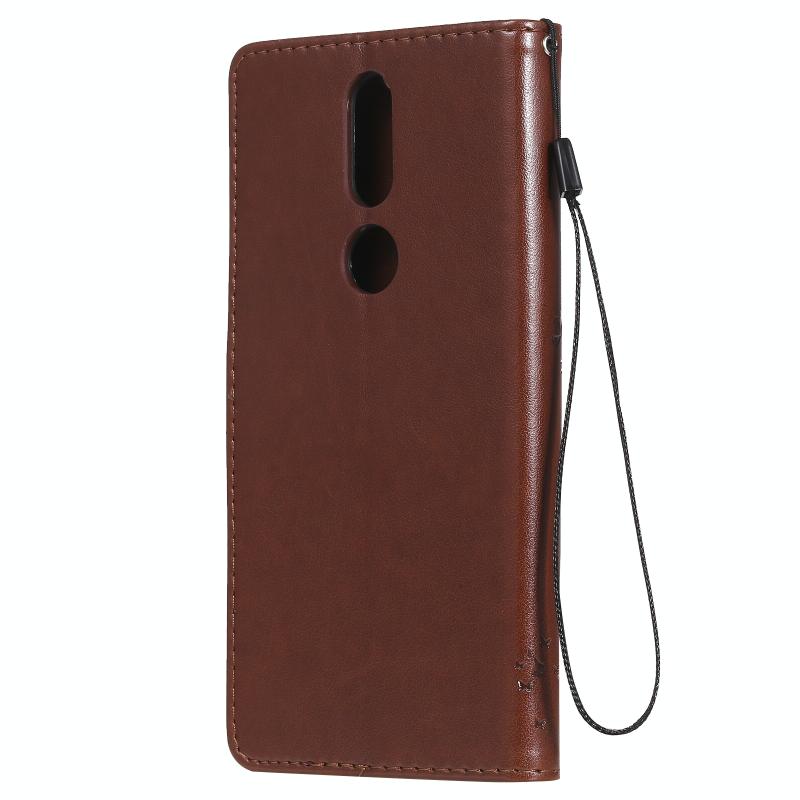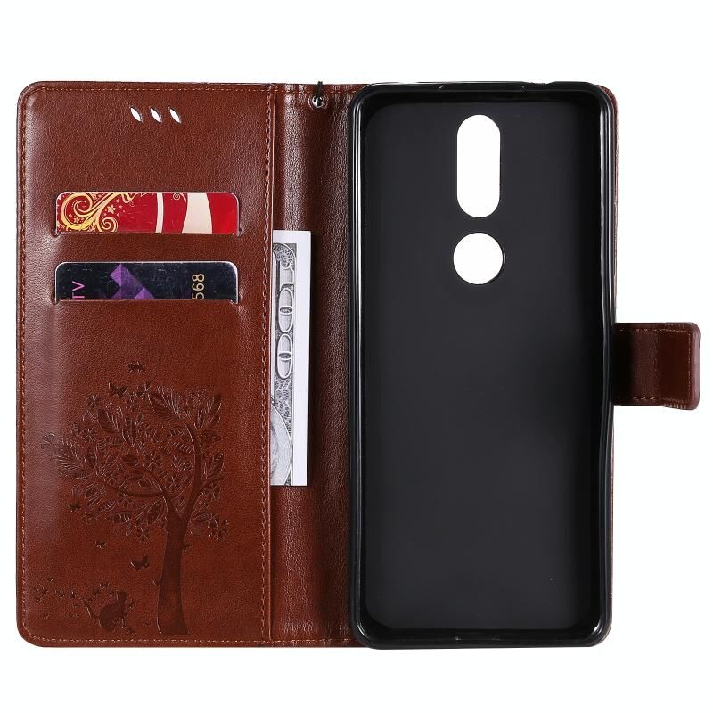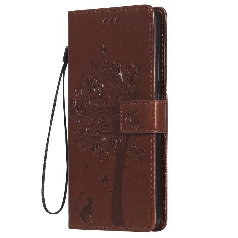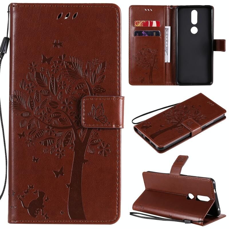 For Nokia 2.4 Tree & Cat Pattern Pressed Printing Horizontal Flip PU Leather Case with Holder & Card Slots & Wallet & Lanyard(Coffee)