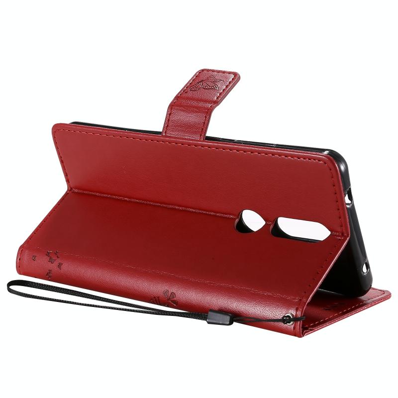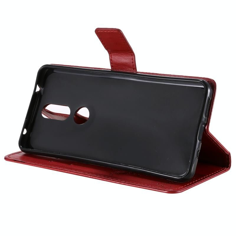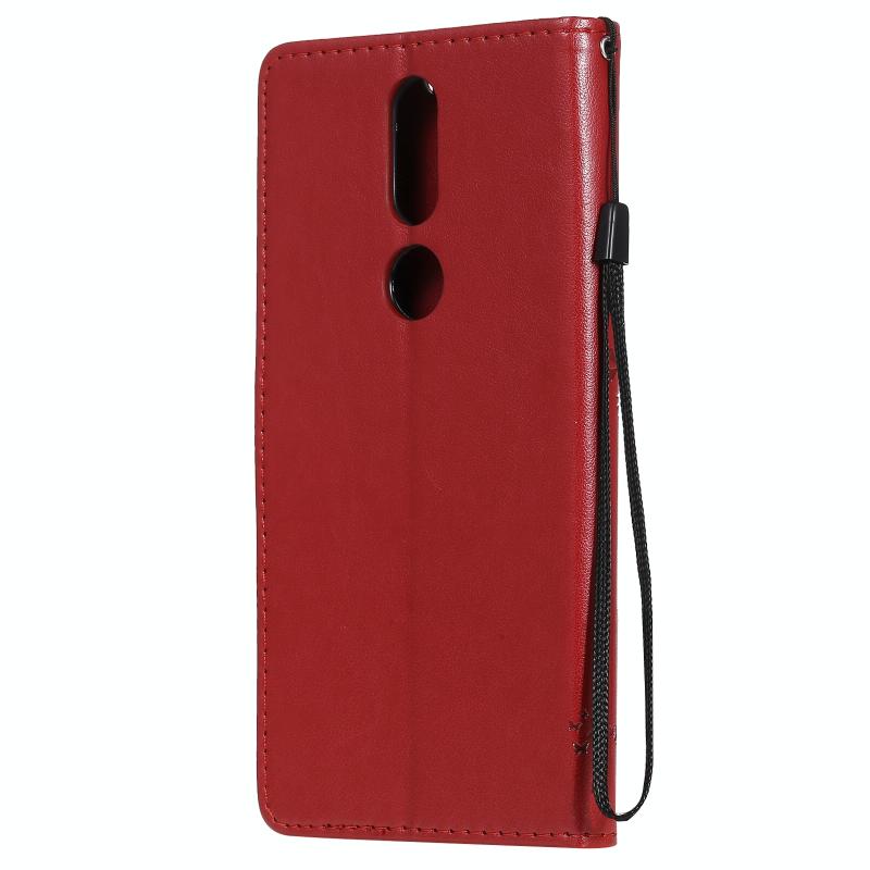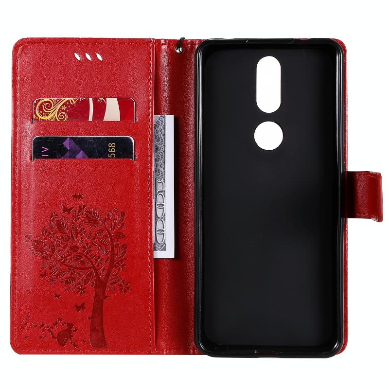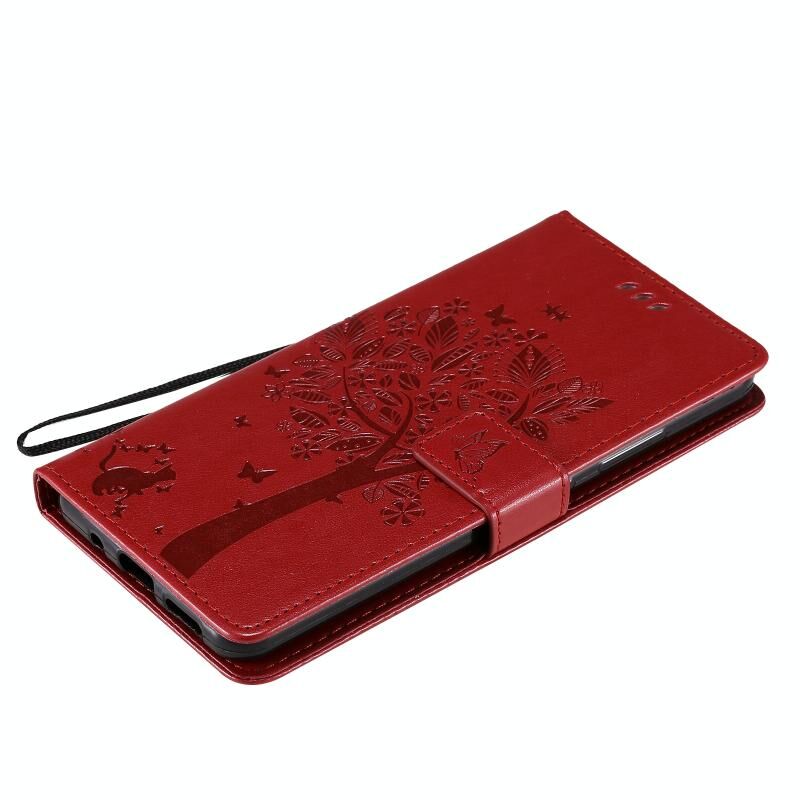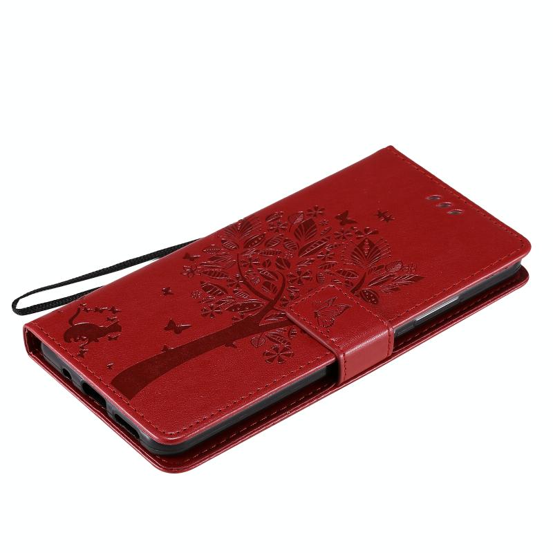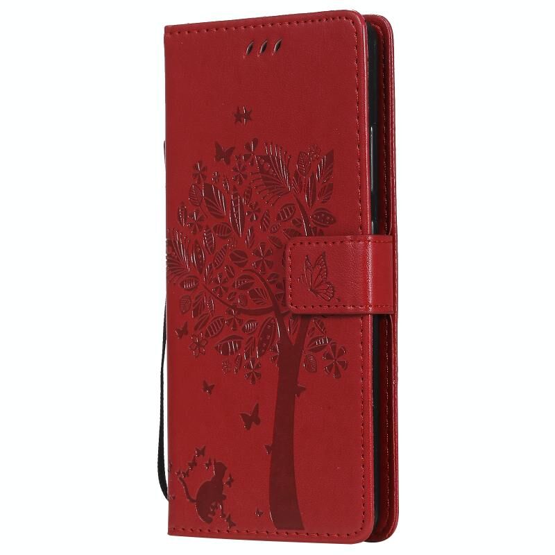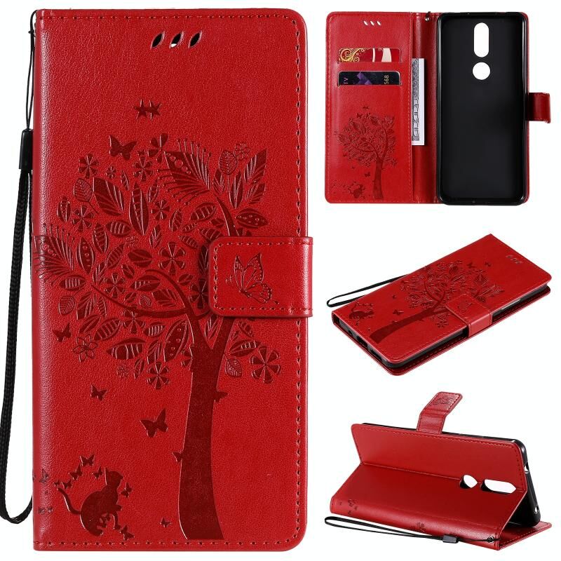 For Nokia 2.4 Tree & Cat Pattern Pressed Printing Horizontal Flip PU Leather Case with Holder & Card Slots & Wallet & Lanyard(Red)