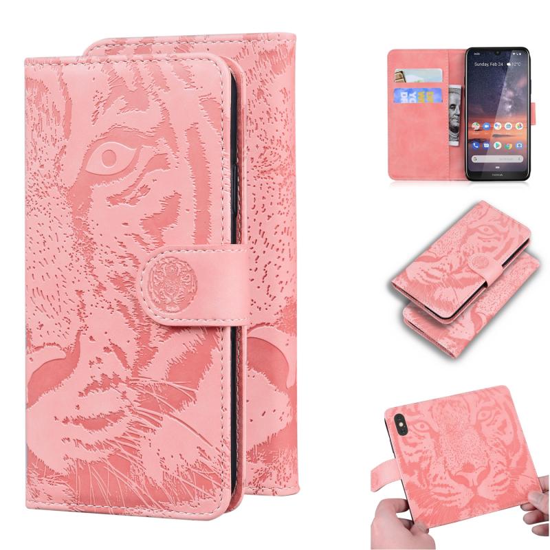 For Nokia 3.2 Tiger Embossing Pattern Horizontal Flip Leather Case with Holder & Card Slots & Wallet(Pink)