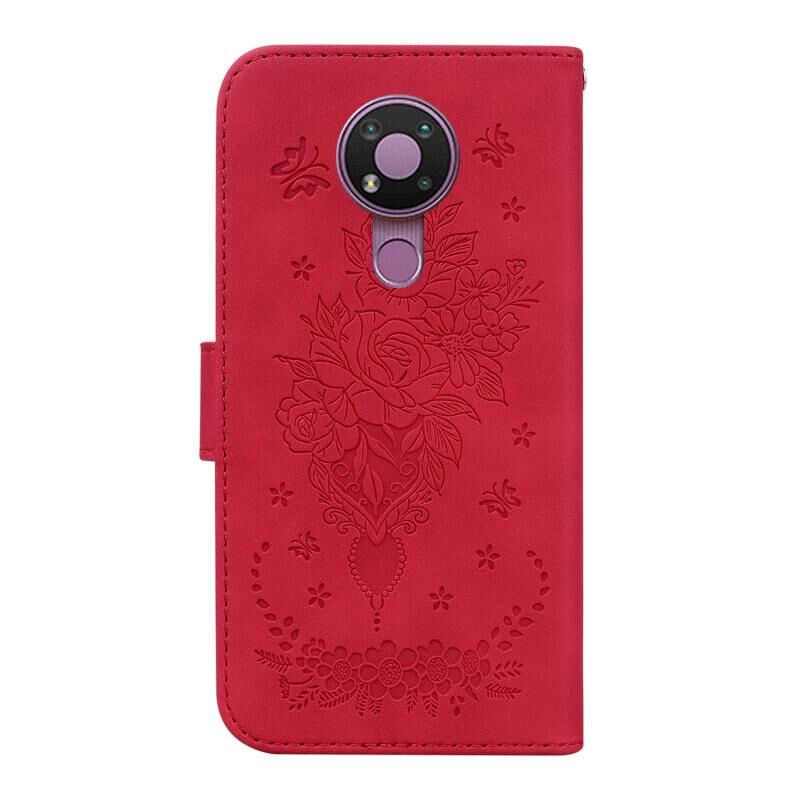 Για Nokia 3.4 Πεταλούδα Rose ανάγλυφη δερμάτινη θήκη τηλεφώνου (κόκκινο)