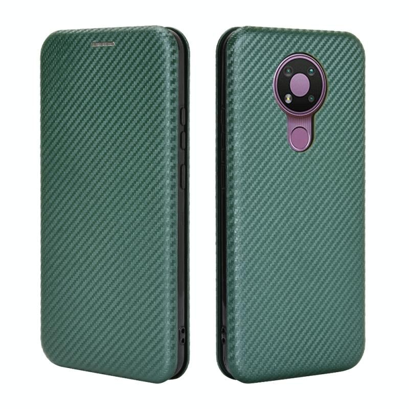 Για Nokia 3.4 Carbon Fiber Texture Οριζόντια Flip TPU + PC + PU δέρμα υπόθεση με υποδοχή κάρτας (πράσινο)