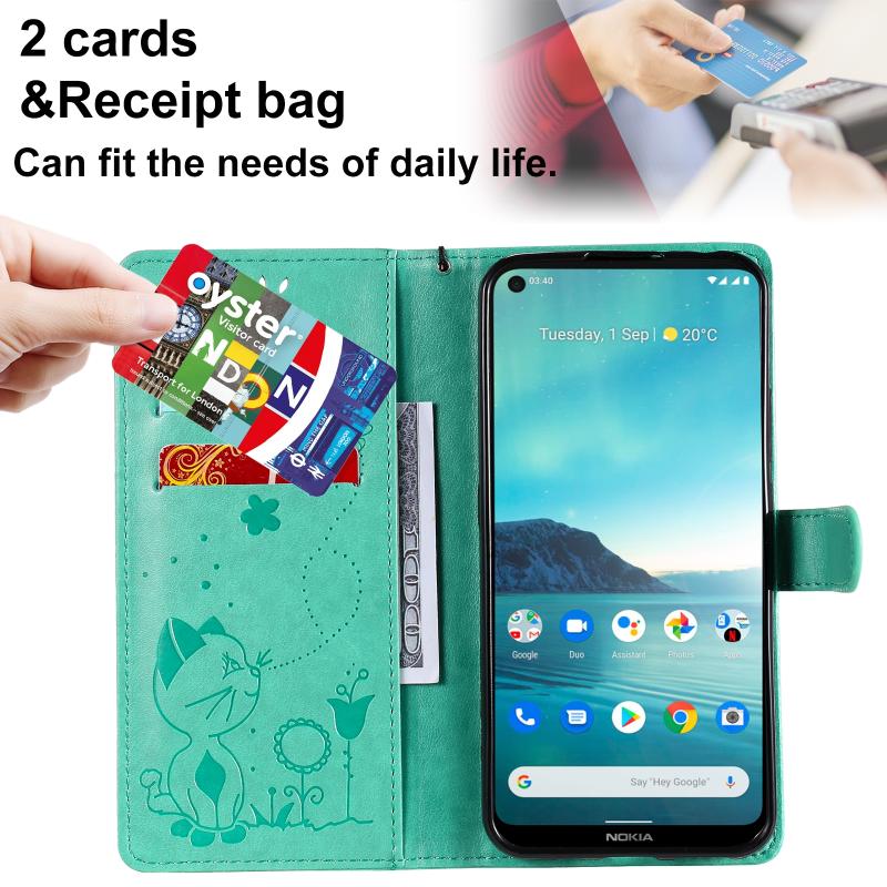 For Nokia 3.4 Cat Bee Embossing Pattern Shockproof Horizontal Flip Leather Case with Holder & Card Slots & Wallet(Green)
