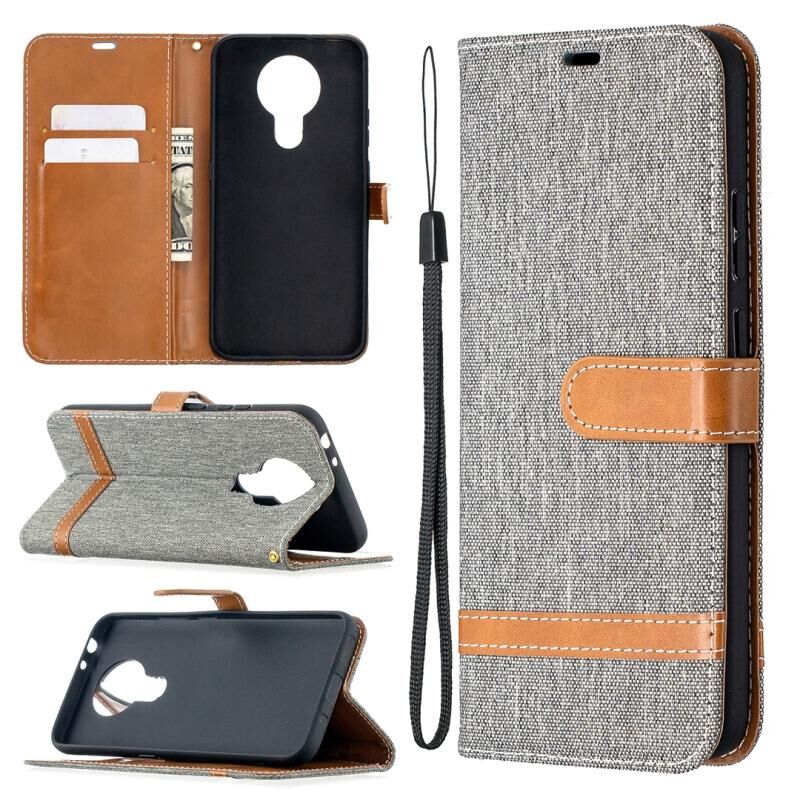 Για Nokia 3.4 Χρωματικά ταιριαστή δερμάτινη θήκη με θήκη για κάρτες & υποδοχές & πορτοφόλι & κορδόνι (γκρι)