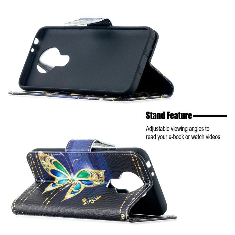 Θήκη δέρματος οριζόντιας αναδίπλωσης με σχέδιο πολύχρωμου σχεδίου για Nokia 3.4 με βάση & υποδοχές καρτών & πορτοφόλι (Πεταλούδα)