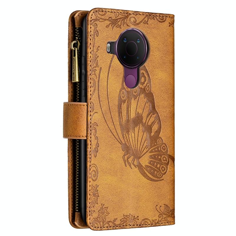 For Nokia 3.4 Flying Butterfly Embossing Pattern Zipper Horizontal Flip Leather Case with Holder & Card Slots & Wallet(Brown)