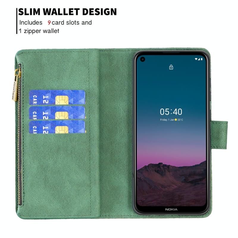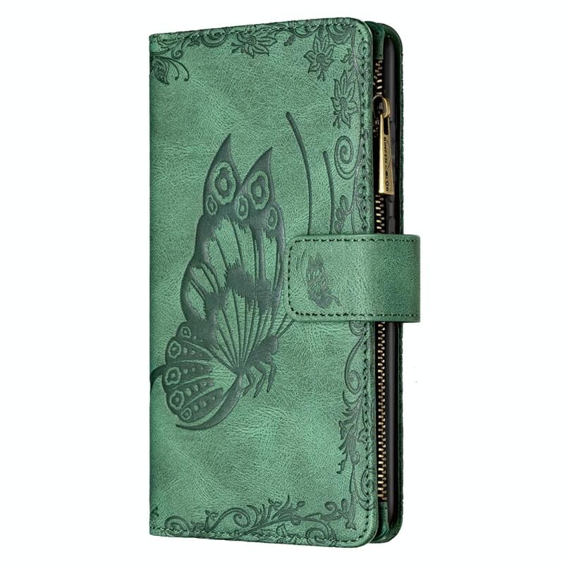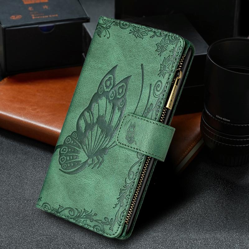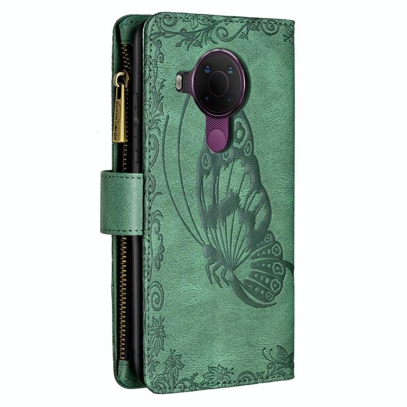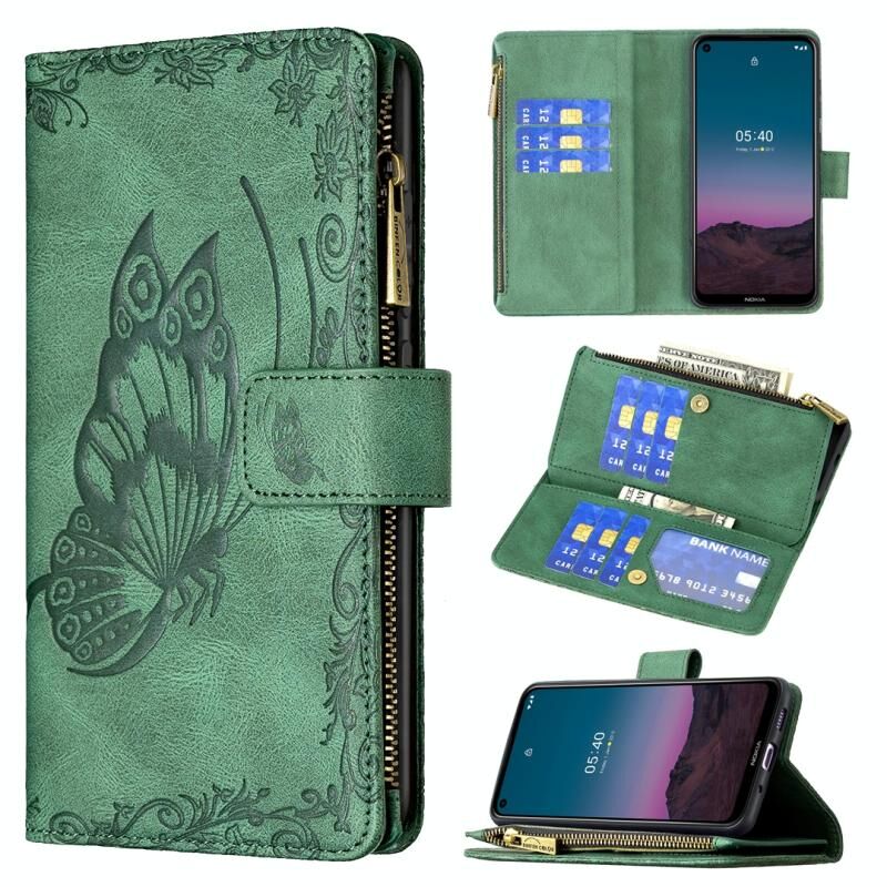 For Nokia 3.4 Flying Butterfly Embossing Pattern Zipper Horizontal Flip Leather Case with Holder & Card Slots & Wallet(Green)