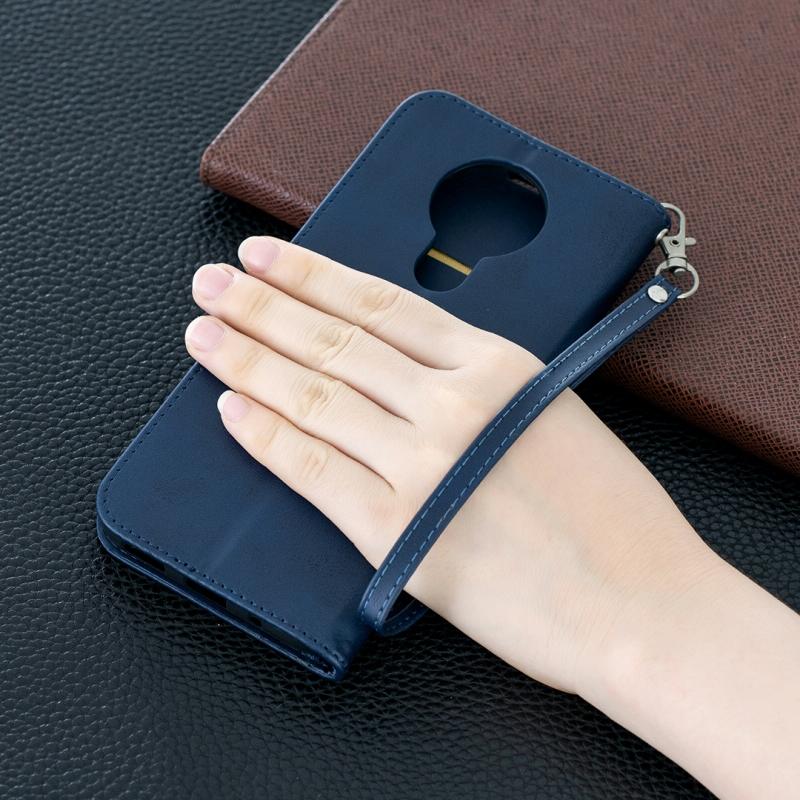 Θήκη Nokia 3.4 Retro Lambskin, Δερμάτινη με Κάρτες & Λουρί (Μπλε)
