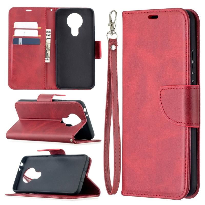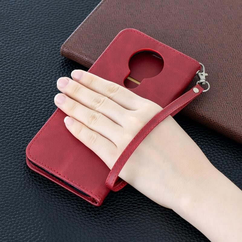 Θήκη Nokia 3.4 Retro Lambskin, Δερμάτινη με Κάρτες & Λουρί (Κόκκινο)