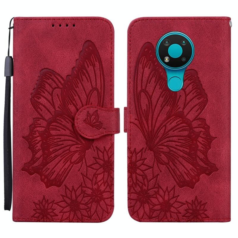 Για Nokia 3.4 Retro δέρμα αίσθηση πεταλούδες ανάγλυφη οριζόντια Flip δερμάτινη θήκη με κάτοχο & υποδοχές καρτών & πορτοφόλι (κόκκινο)