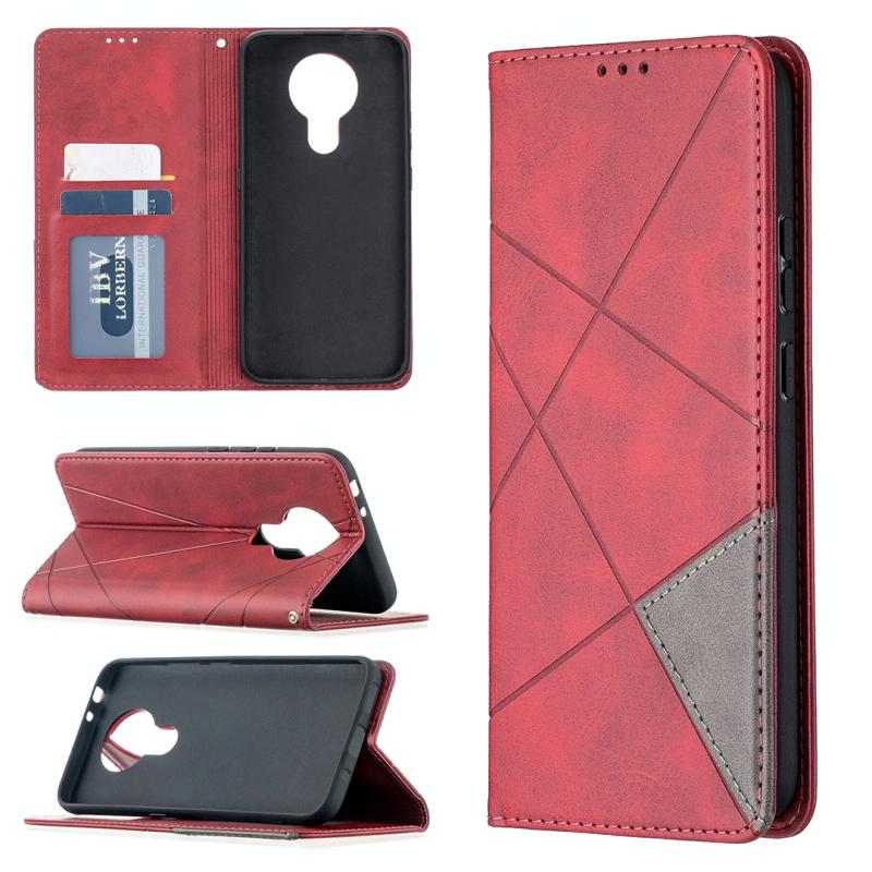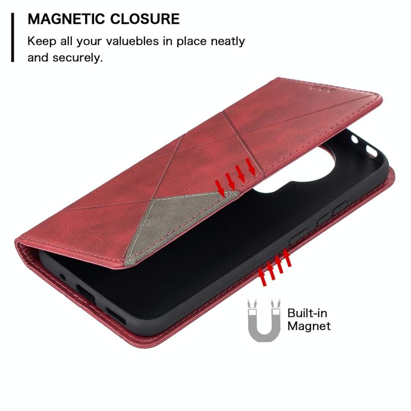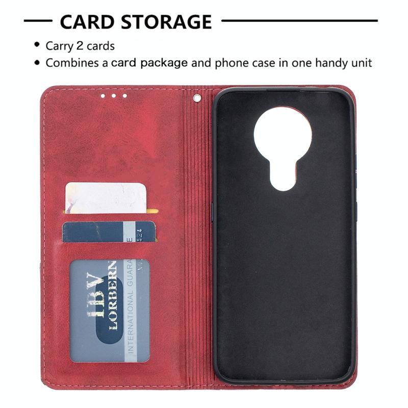 Θήκη Nokia 3.4 με Δέρμα, Μαγνητικό Κλείσιμο, Υποδοχές Καρτών & Στήριξη (Κόκκινο)
