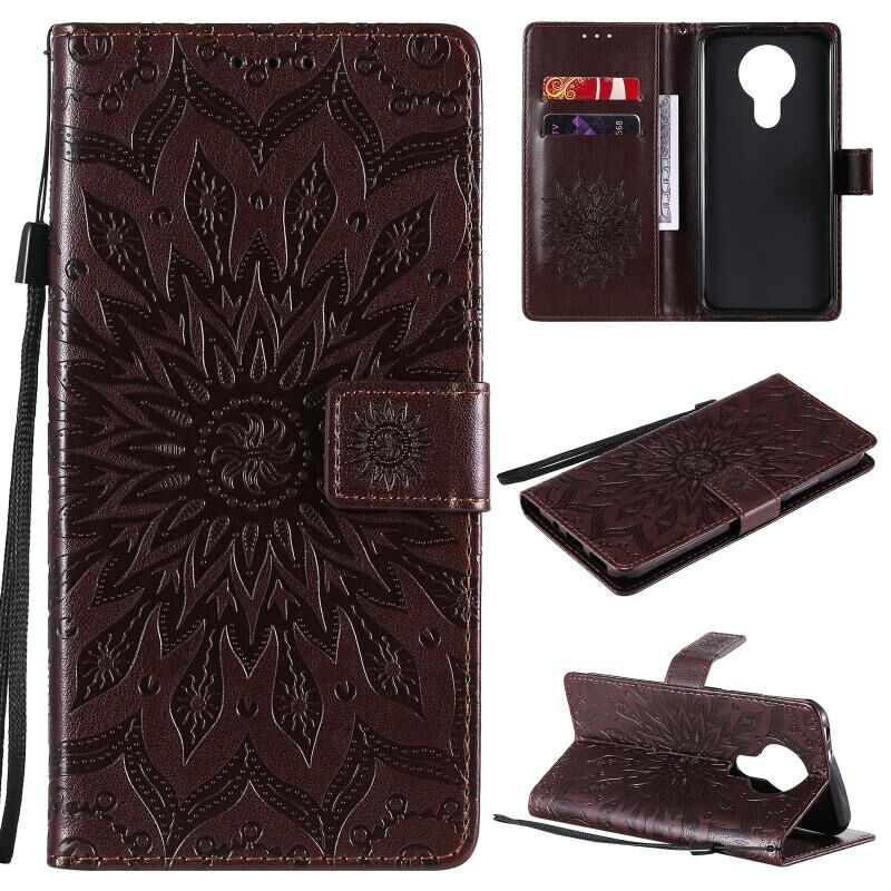 For Nokia 3.4 Sun Embossing Pattern Horizontal Flip Leather Case with Card Slot & Holder & Wallet & Lanyard(Brown)