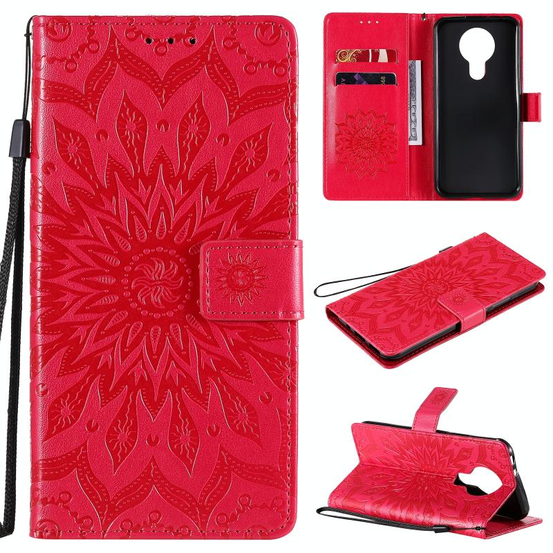 For Nokia 3.4 Sun Embossing Pattern Horizontal Flip Leather Case with Card Slot & Holder & Wallet & Lanyard(Red)