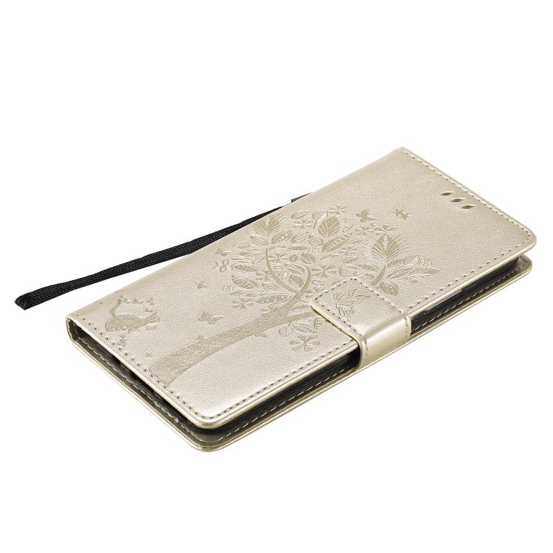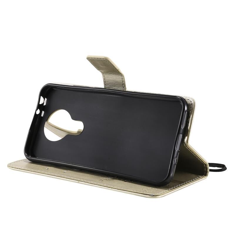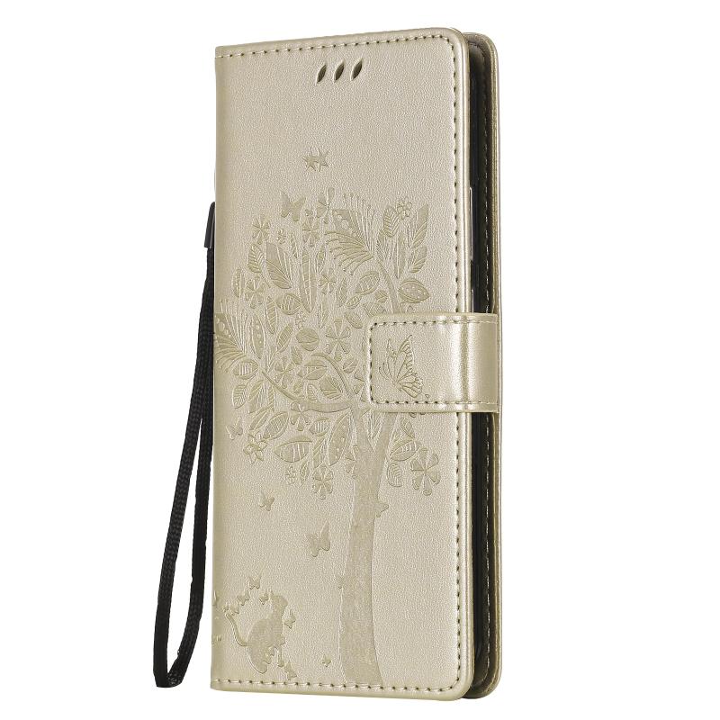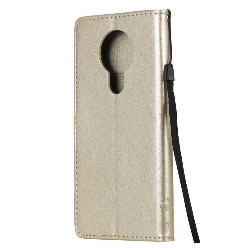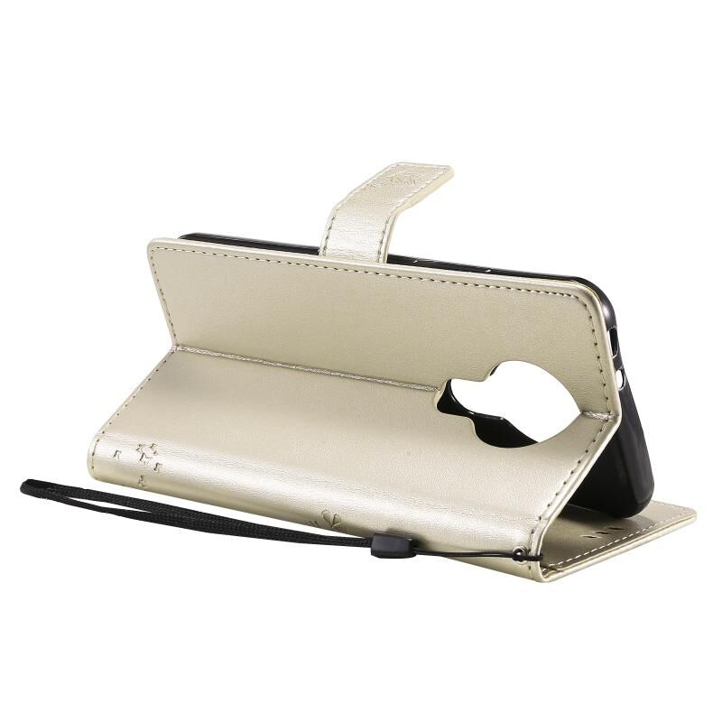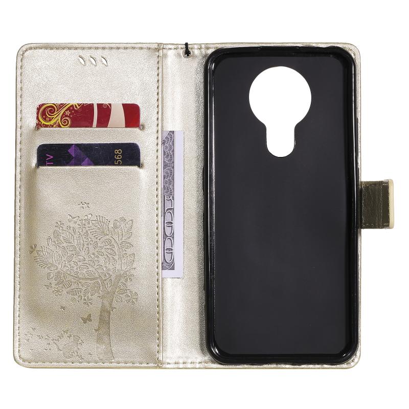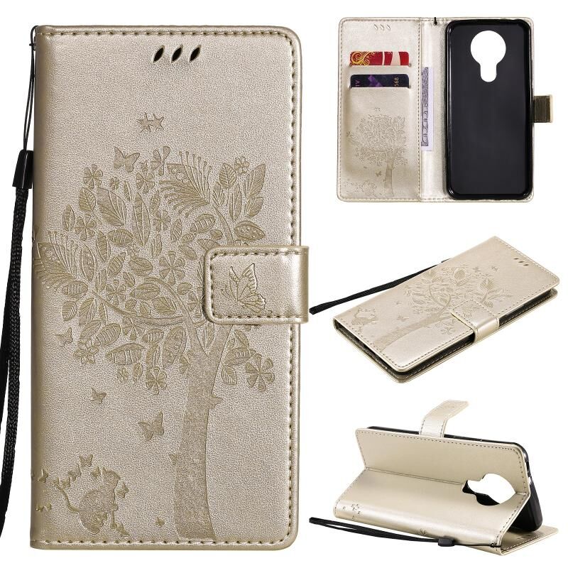 For Nokia 3.4 Tree & Cat Pattern Pressed Printing Horizontal Flip PU Leather Case with Holder & Card Slots & Wallet & Lanyard(Gold)