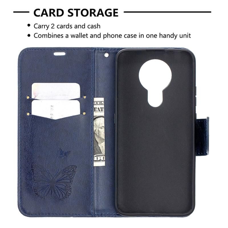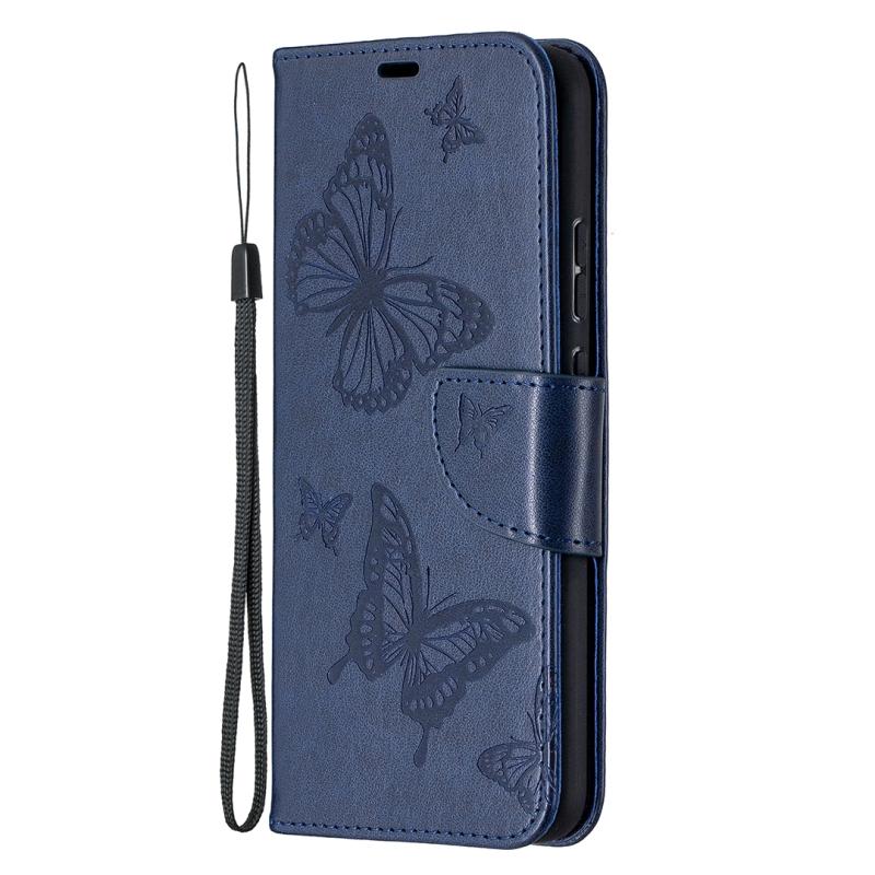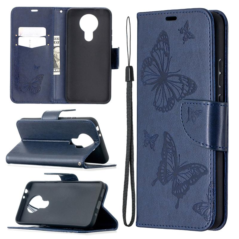 For Nokia 3.4 Two Butterflies Embossing Pattern Horizontal Flip Leather Case with Holder & Card Slot & Wallet & Lanyard(Dark Blue)