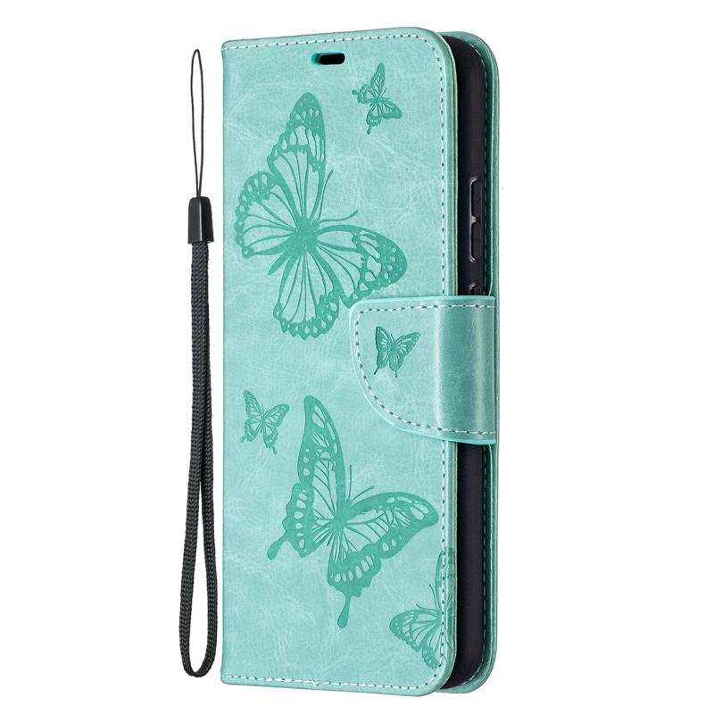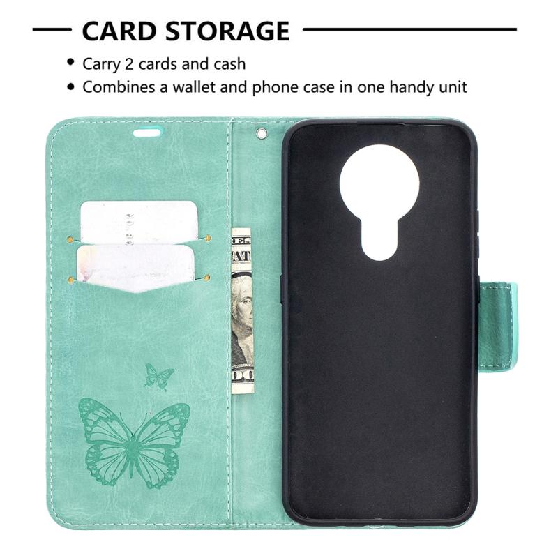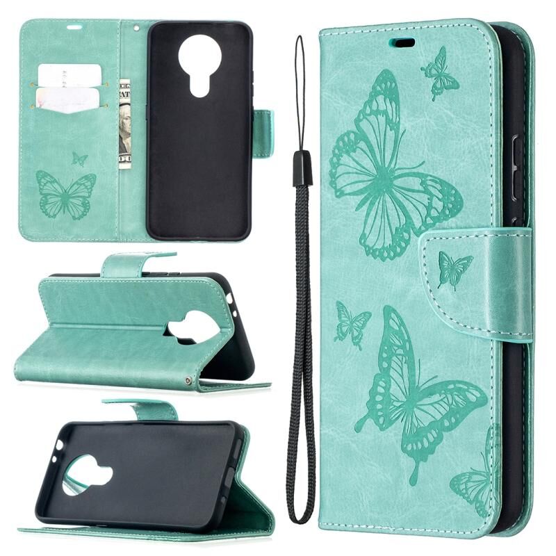 For Nokia 3.4 Two Butterflies Embossing Pattern Horizontal Flip Leather Case with Holder & Card Slot & Wallet & Lanyard(Green)