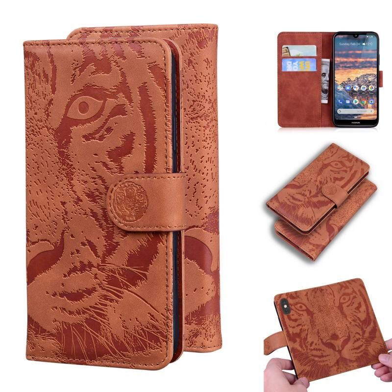 Θήκη δέρματος οριζόντιας αναδίπλωσης για Nokia 4.2 με ανάγλυφο σχέδιο τίγρης, με βάση & υποδοχές καρτών & πορτοφόλι (Κόκκινο)