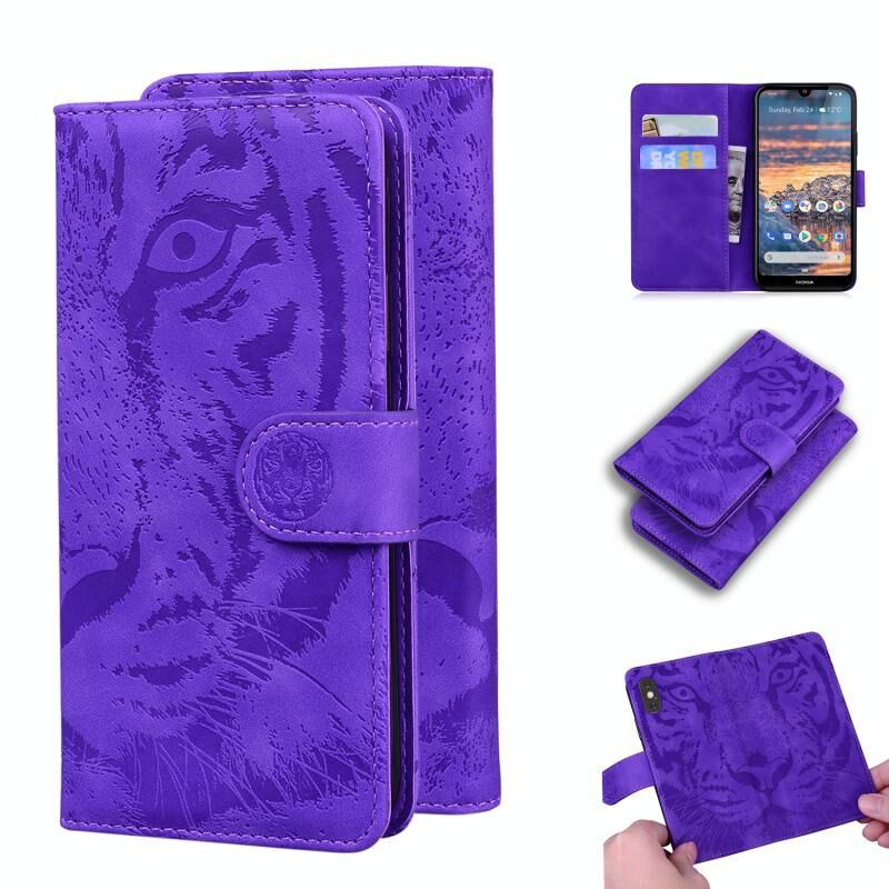 For Nokia 4.2 Tiger Embossing Pattern Horizontal Flip Leather Case with Holder & Card Slots & Wallet(Purple)