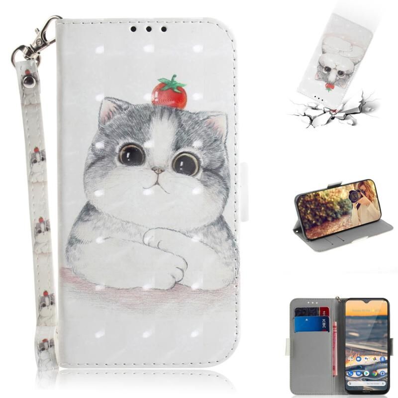 Θήκη δέρματος οριζόντιας αναδίπλωσης με μαγνητική έλξη και τρισδιάστατο σχέδιο για Nokia 5.3, με βάση στήριξης, θήκη για κάρτες, πορτοφόλι και κορδόνι (Χαριτωμένη Γάτα)