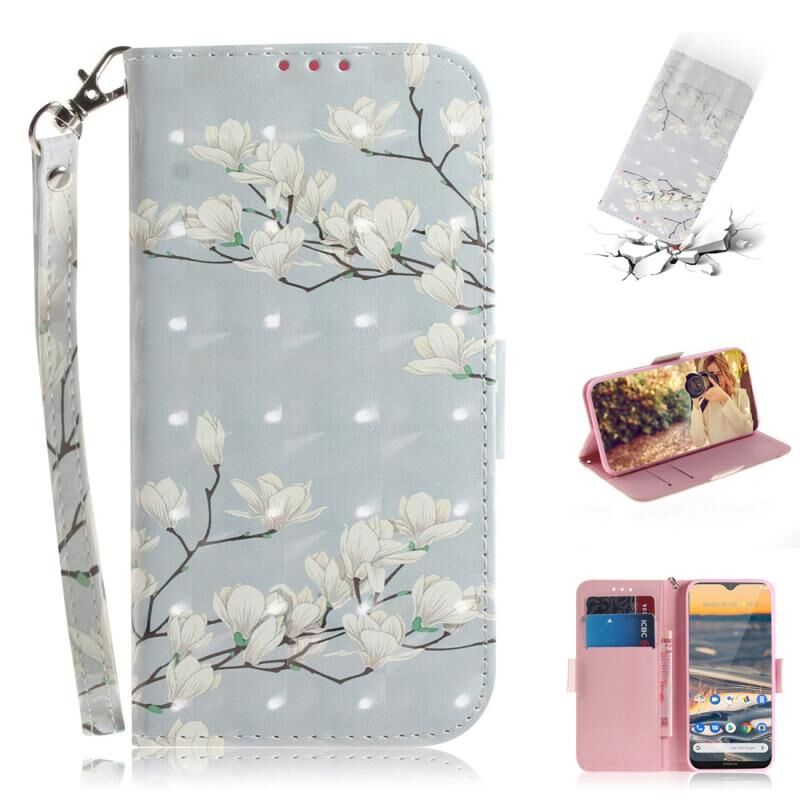 Θήκη δέρματος οριζόντιας αναδίπλωσης με μαγνητική έλξη και τρισδιάστατο σχέδιο για Nokia 5.3, με βάση στήριξης, θήκη για κάρτες, πορτοφόλι και κορδόνι (Μαγνολία)