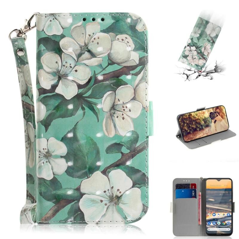 Θήκη δέρματος οριζόντιας αναδίπλωσης με μαγνητική έλξη και τρισδιάστατο σχέδιο για Nokia 5.3, με βάση στήριξης, θήκη για κάρτες, πορτοφόλι και κορδόνι (Ακουαρέλα Λουλούδια).