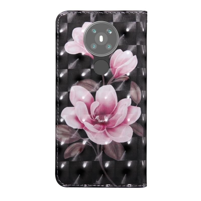 Θήκη για Nokia 5.3 με τρισδιάστατο σχέδιο ζωγραφικής, πολύχρωμη, οριζόντια αναδίπλωση, από δερματίνη PU με βάση & υποδοχές καρτών & πορτοφόλι & κορδόνι (Μαύρο Δαντέλα)