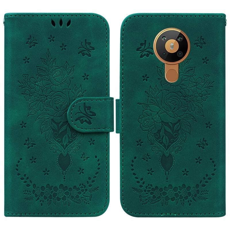 Για Nokia 5.3 Πεταλούδα Rose ανάγλυφη δερμάτινη θήκη τηλεφώνου (πράσινο)