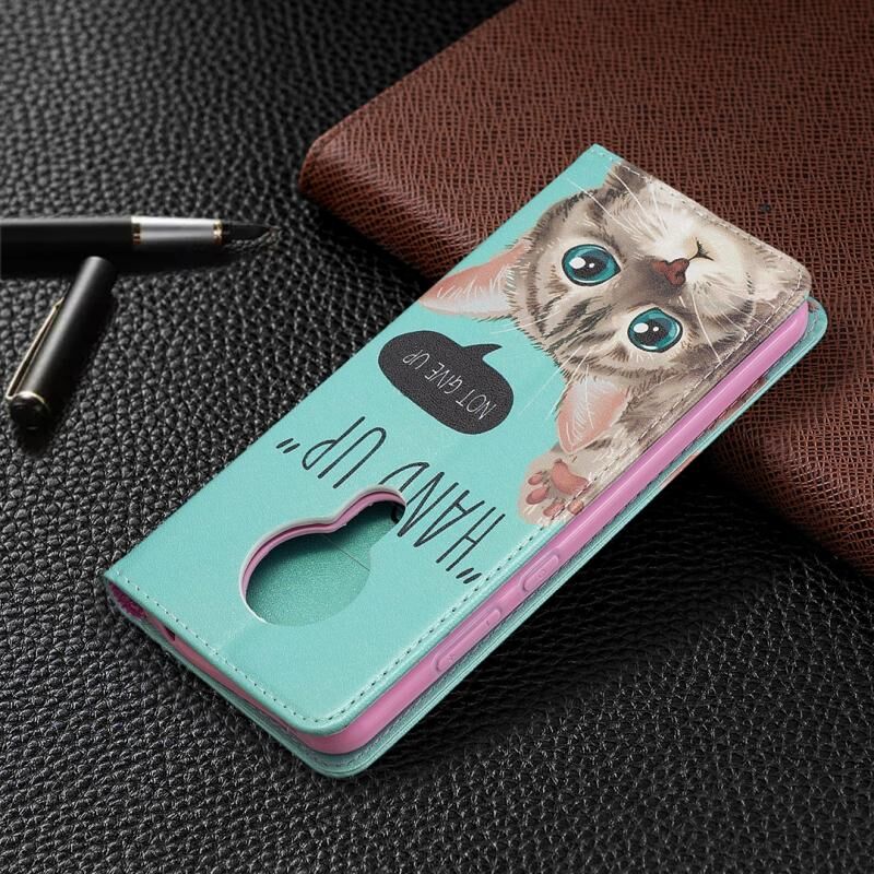 Θήκη για Nokia 5.3 με έγχρωμο σχέδιο, αόρατο μαγνητικό, οριζόντιο flip από δερματίνη PU με βάση & υποδοχές καρτών & πορτοφόλι (Γάτα)