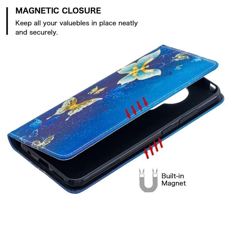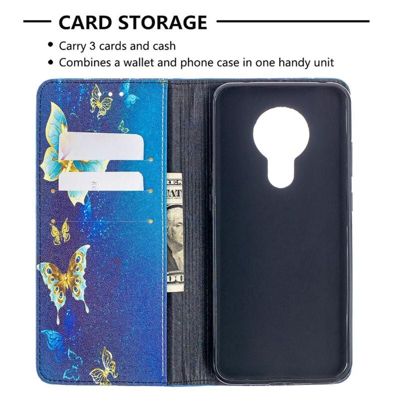 Θήκη για Nokia 5.3 με έγχρωμο σχέδιο, αόρατο μαγνητικό, οριζόντιο flip από δερματίνη PU με βάση & υποδοχές καρτών & πορτοφόλι (Μπλε Φύλλα)