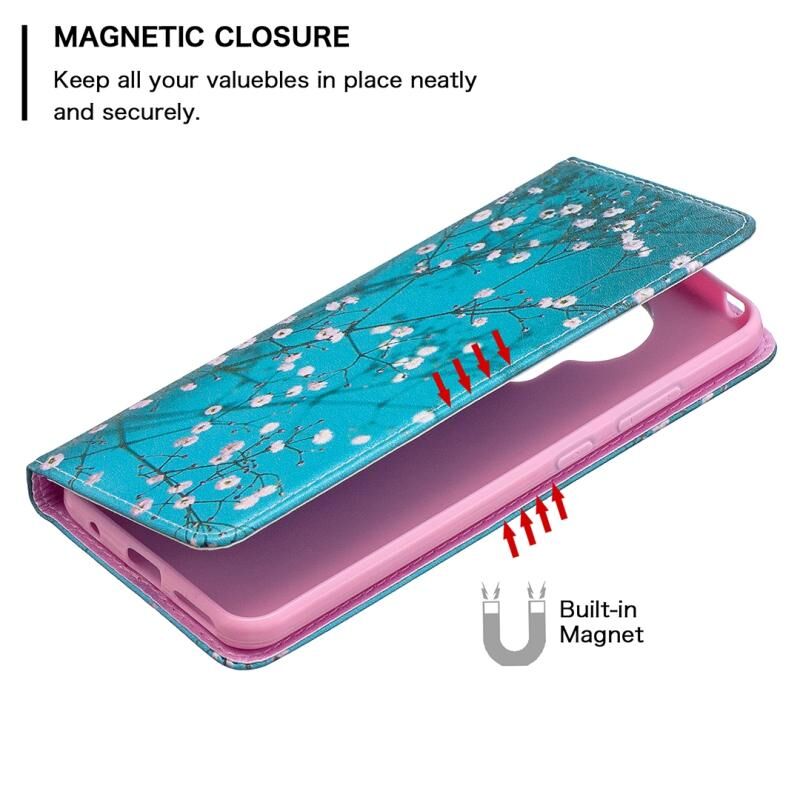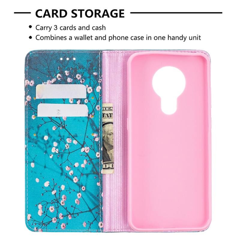 Θήκη για Nokia 5.3 με έγχρωμο σχέδιο, αόρατο μαγνητικό, οριζόντιο flip από δερματίνη PU με βάση & υποδοχές καρτών & πορτοφόλι (Λουλούδι Δαμασκηνιάς)