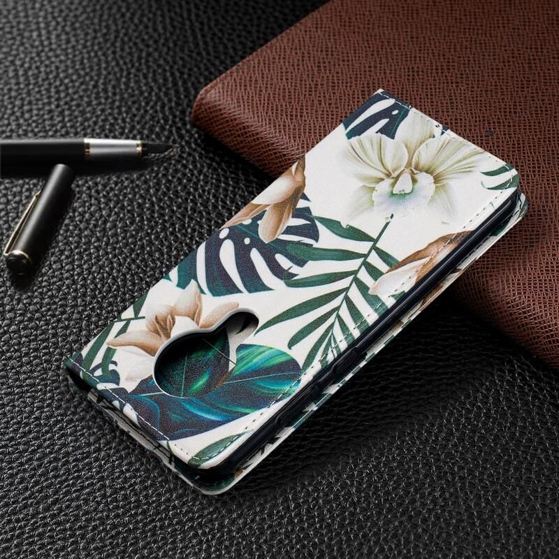 Θήκη για Nokia 5.3 με έγχρωμο σχέδιο, αόρατο μαγνητικό, οριζόντιο flip από δερματίνη PU με βάση & υποδοχές καρτών & πορτοφόλι (Μπλε Φύλλα)