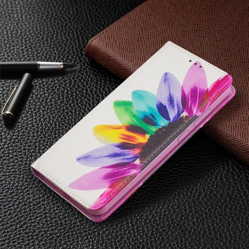 Θήκη για Nokia 5.3 με έγχρωμο σχέδιο, αόρατο μαγνητικό, οριζόντιο flip από δερματίνη PU με βάση & υποδοχές καρτών & πορτοφόλι (Ηλίανθος)
