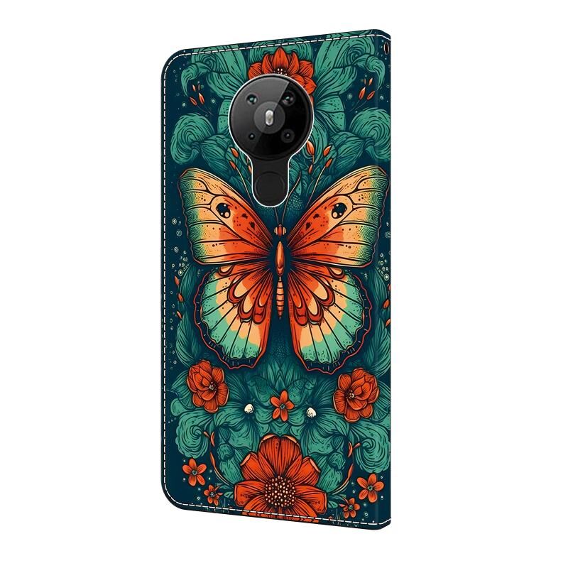 Θήκη τηλεφώνου Nokia 5.3 από δέρμα με κρυστάλλινη ζωγραφική (Λουλούδι Πεταλούδα)