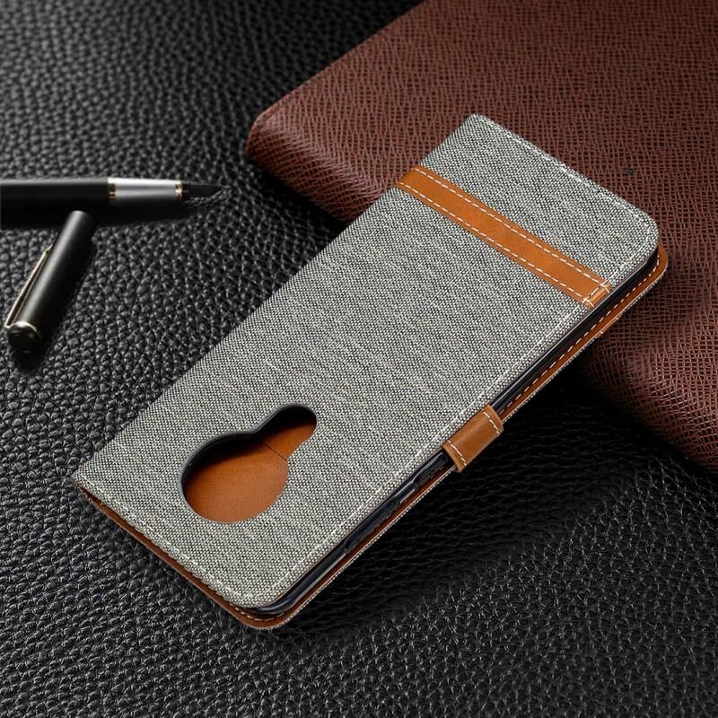 Για Nokia 5.3 Denim Texture Οριζόντια Flip δερμάτινη θήκη με θήκη & υποδοχές για κάρτες & πορτοφόλι & κορδόνι (γκρι)