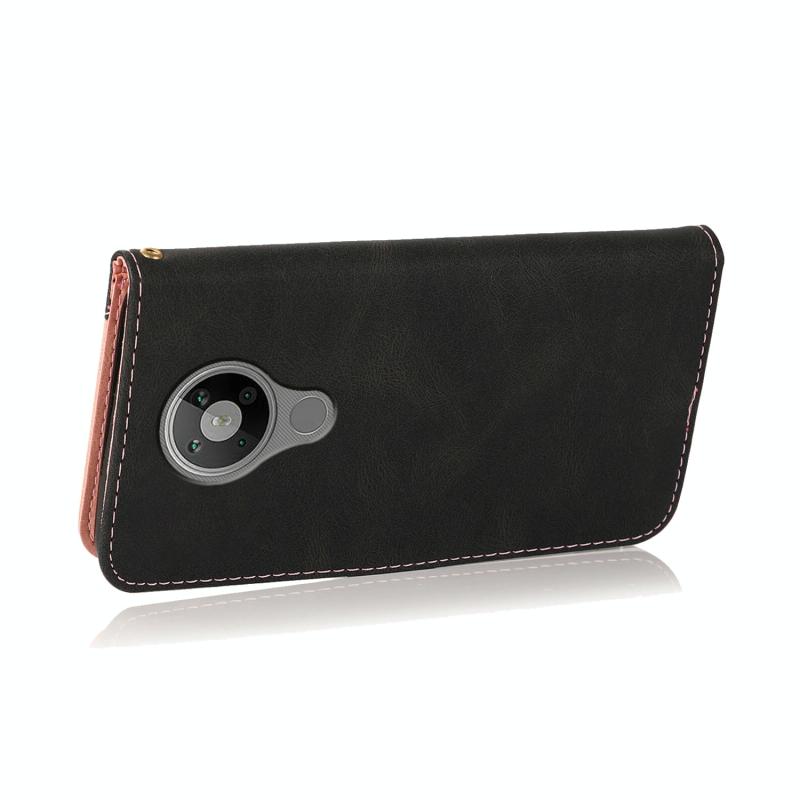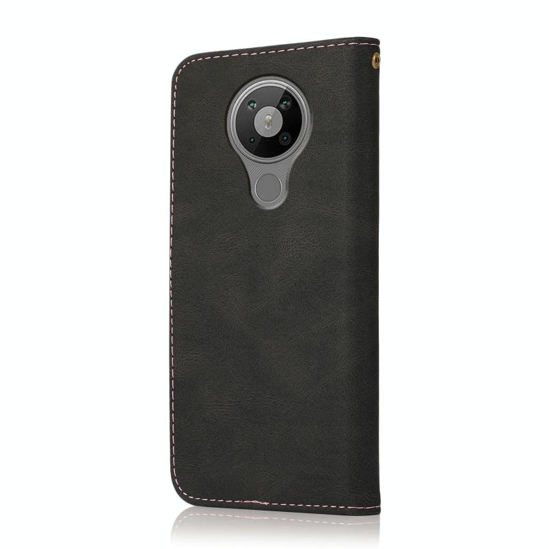 Θήκη τηλεφώνου από δέρμα με διπλή ραφή για Nokia 5.3 (Μαύρο Ροζ Χρυσό)