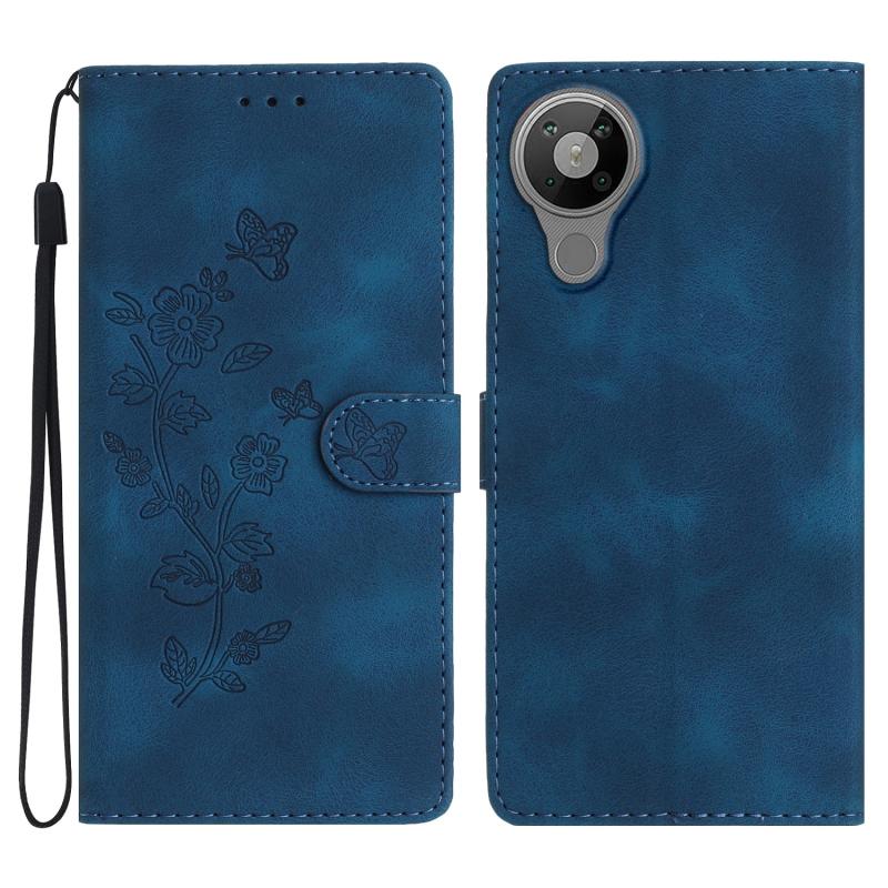 Θήκη τηλεφώνου δερμάτινη με ανάγλυφο σχέδιο λουλουδιών και πεταλούδων για Nokia 5.3 (Μωβ)