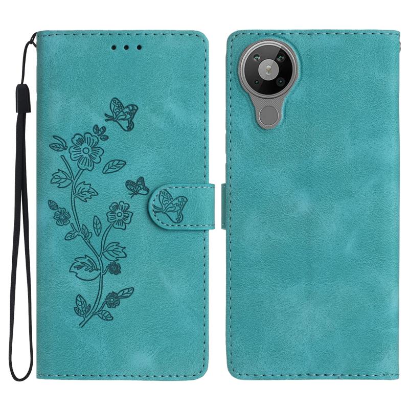 Θήκη τηλεφώνου δερμάτινη με ανάγλυφο σχέδιο λουλουδιών και πεταλούδων για Nokia 5.3 (Μωβ)