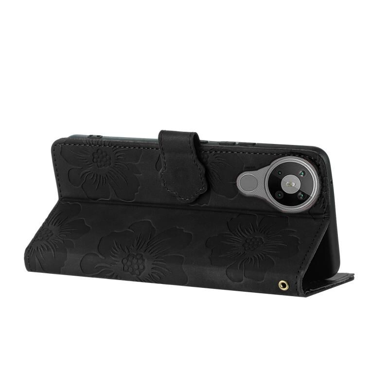 Για Nokia 5.3 λουλούδι ανάγλυφο μοτίβο δερμάτινη θήκη τηλεφώνου (μαύρο)